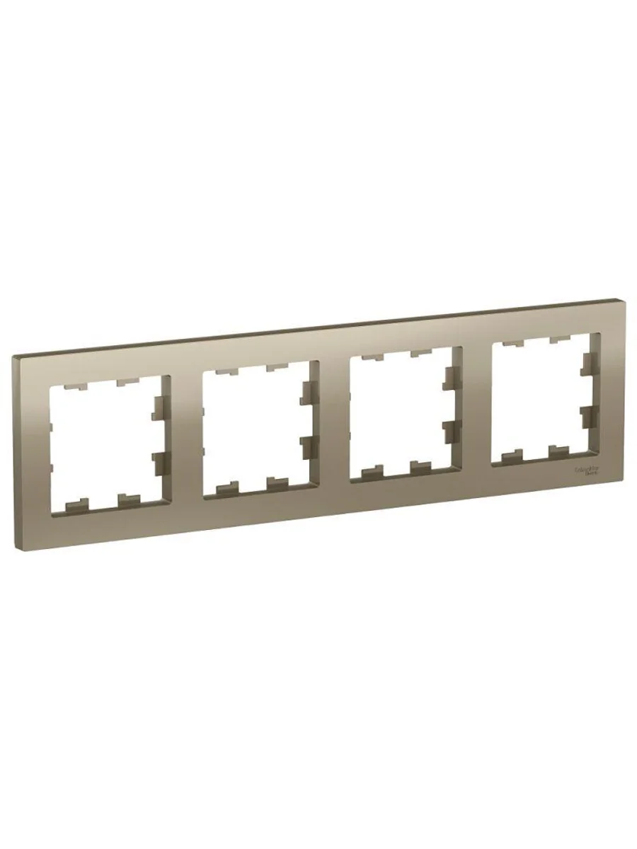Рамка Systeme Electric (ранее Schneider Electric) серии AtlasDesign в цвете шампань четырёхместная. - Устанавливается в вертикальном и горизонтальном положениях. - Лицевые детали из качественного ABS-пластика, устойчивого к царапинам и УФ-излучению. - Позволяет гармонично вписать электроустановочное изделие в интерьер помещения.