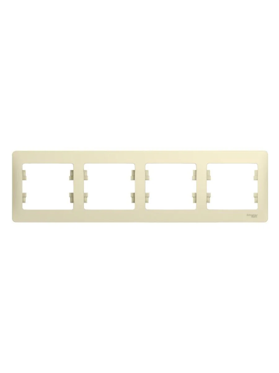 Рамка Systeme Electric серии Glossa (цвет бежевый) четырёхместная. Устанавливается в горизонтальном положении. Выполнена из материала PС+ASA, стойкого к УФ-излучению и появлению царапин. Позволяет гармонично вписать электроустановочное изделие в интерьер помещения (ранее Schneider Electric MGU2.008.25, NU200844).
