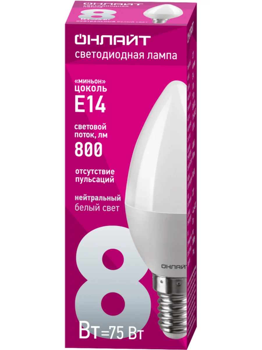 Лампа светодиодная 71 633 OLL-C37-8-230-4K-E14-FR 8Вт свеча 4000К нейтр. бел. E14 600лм 220-240В ОНЛАЙТ 71633 - купить в KeepBuilding | KeepBuilding