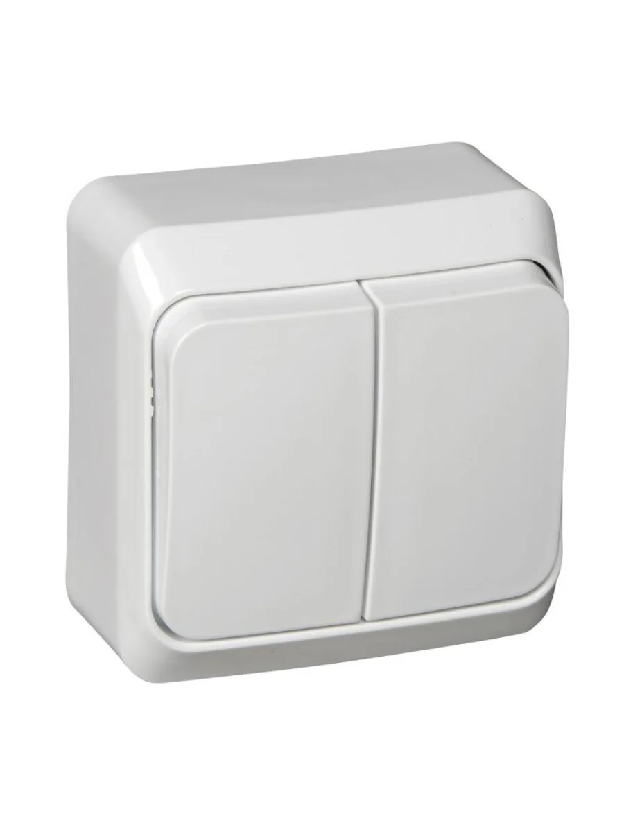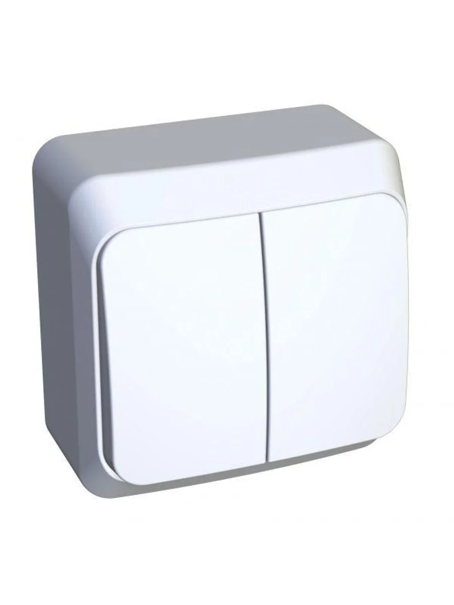 Выключатель Systeme Electric (ранее Schneider Electric) ЭТЮД (белый, открытой установки) двухклавишный предназначен для применения в сетях до 250В, на ток до 10А. Две клавиши позволяют управлять двумя источниками света с одной точки. Он прост в установке и удобен применении. Сделано в России.