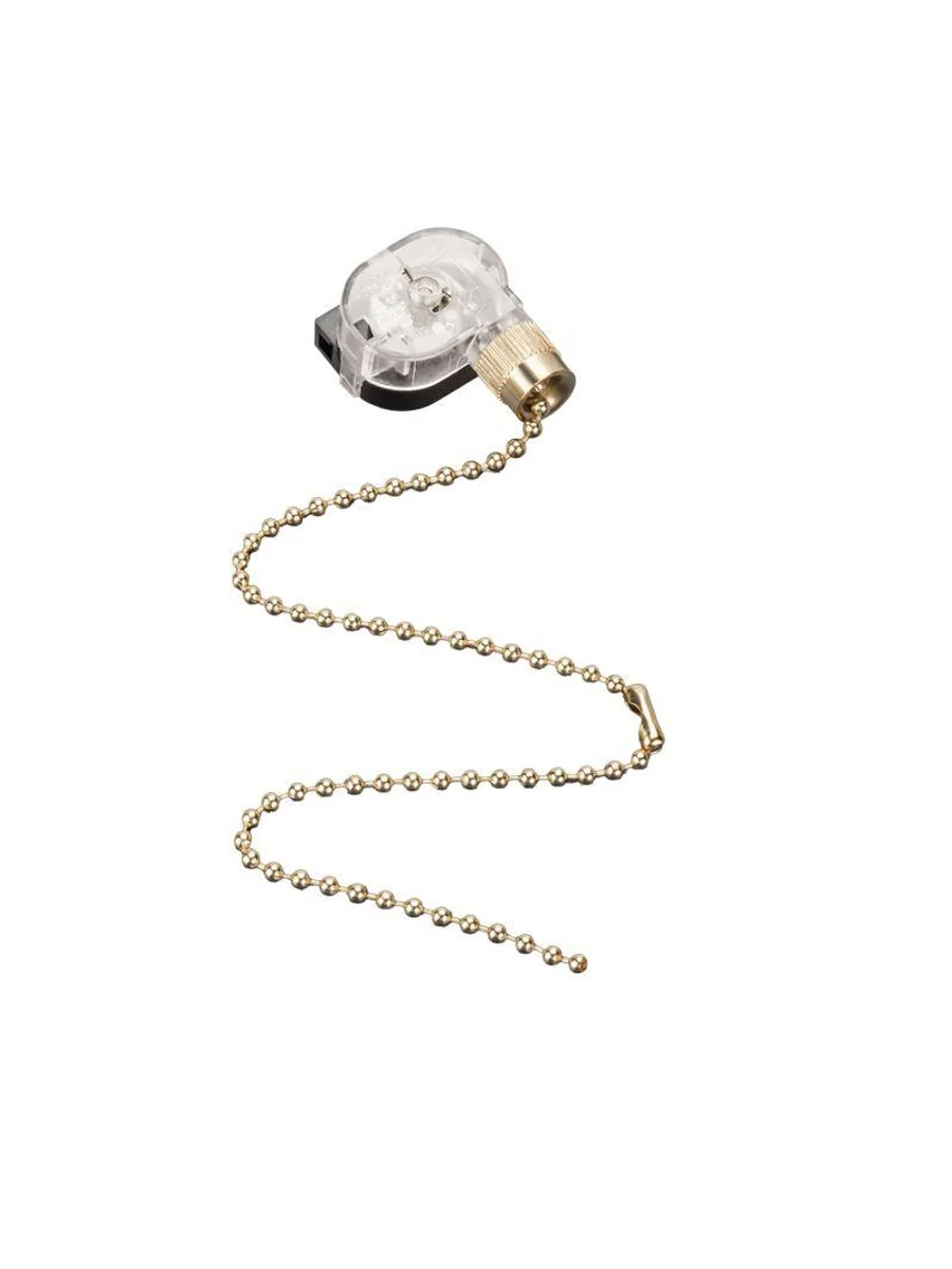 Выключатель для настенного светильника предназначен для замены вышедшего из строя выключателя на осветительном приборе. Используется для удобного управления освещением. Позолоченная цепочка устойчива к коррозии и сохраняет эстетичный вид долгое время, а длина 27 см обеспечивает удобный доступ к светильникам, которые расположены высоко. Предназначен для использования только в жилых помещениях.