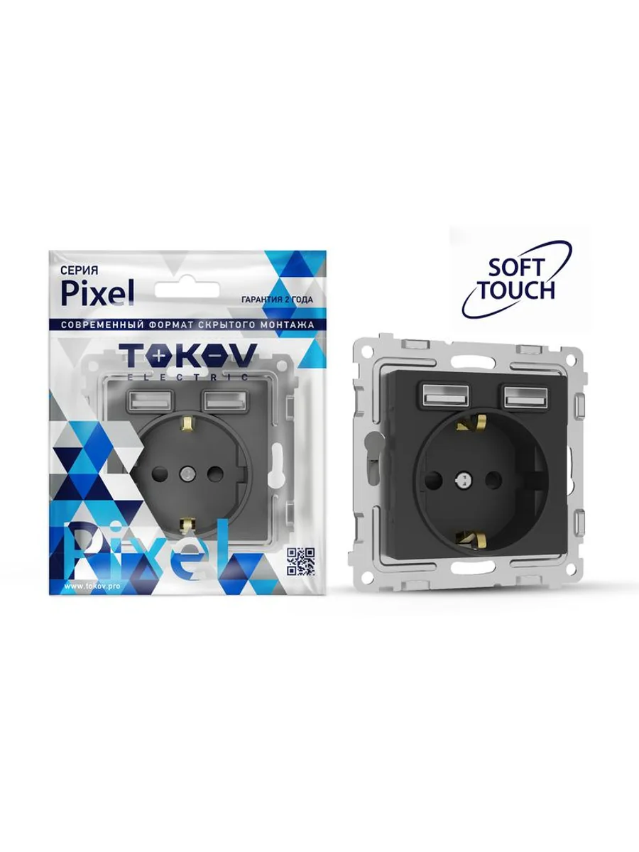 Розетка 1-м СП Pixel IP20 с заземл. с 2-мя заряд. устр. USB тип A+A механизм карбон TOKOV ELECTRIC TKE-PX-R1U2A-C14 - купить в KeepBuilding | KeepBuilding