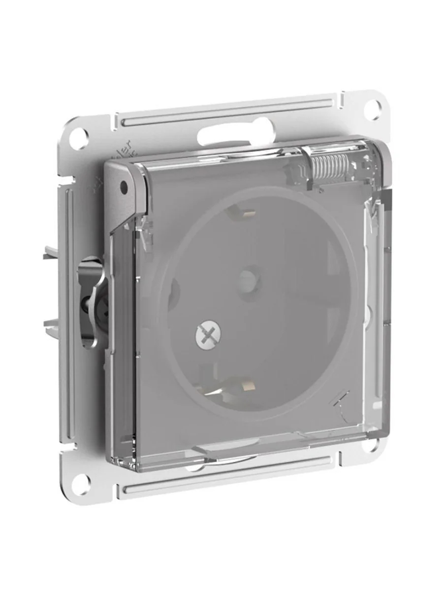 Механизм Systeme Electric (ранее Schneider Electric) серии AtlasDesign Aqua в цвете алюминий розетки одинарной с заземлением, шторками и крышкой подходит для сетей 250 В, на ток 16 А. Изделие со степенью защиты IP44 обеспечит безопасность использования в ванной и на кухне. Несмотря на внешнее сходство, конструкция рамок серии AtlasDesign Aqua отличается от конструкции рамок AtlasDesign. Механизмы и рамки со степенью защиты IP20 несовместимы с механизмами и рамками со степенью защиты IP44.