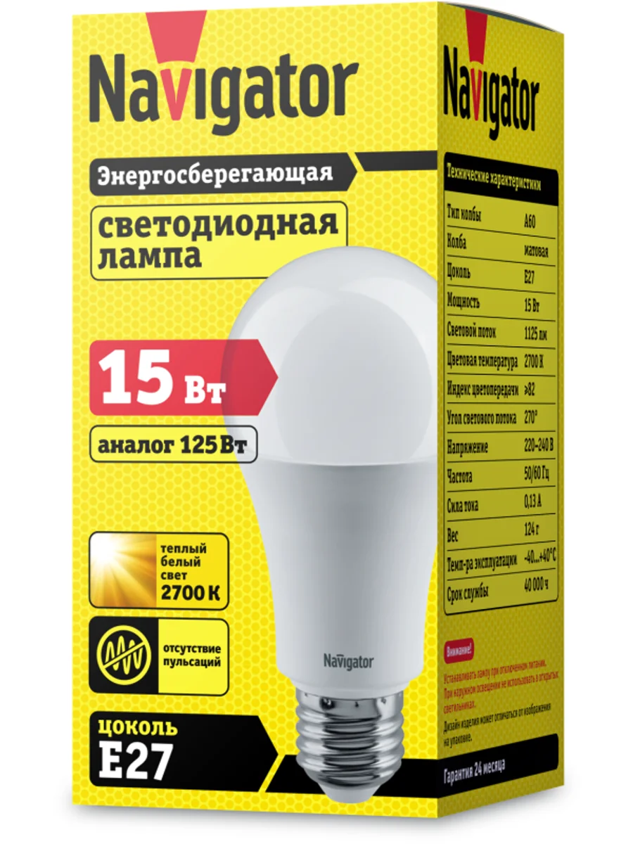 Лампа светодиодная 61 200 NLL-A70/А60-15-230-2.7K-E27 15Вт грушевидная матовая 2700К тепл. бел. E27 1125лм 176-264В Navigator 61200 - купить в KeepBuilding | KeepBuilding