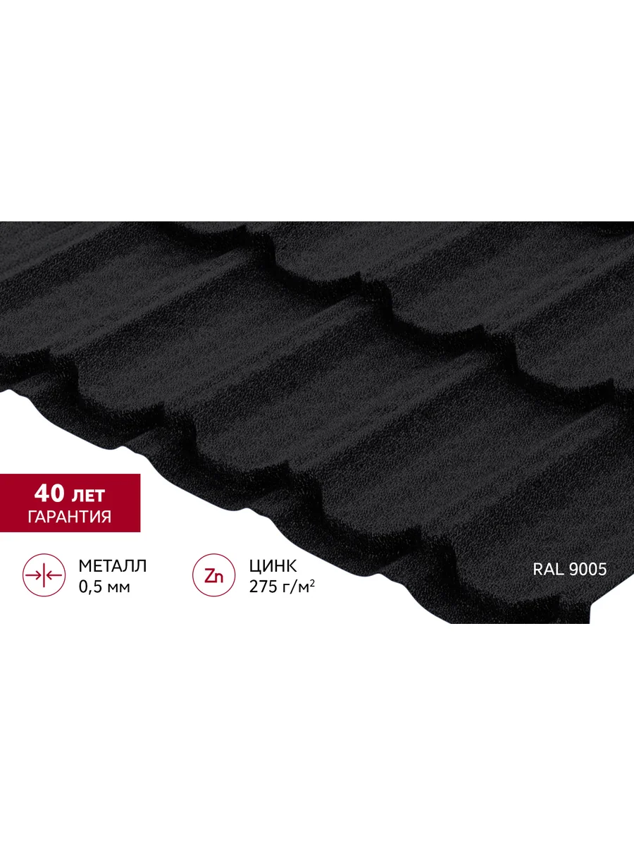 2. Эстетичный внешний вид: чёрный цвет RAL 9005 придаёт кровле современный и стильный вид.