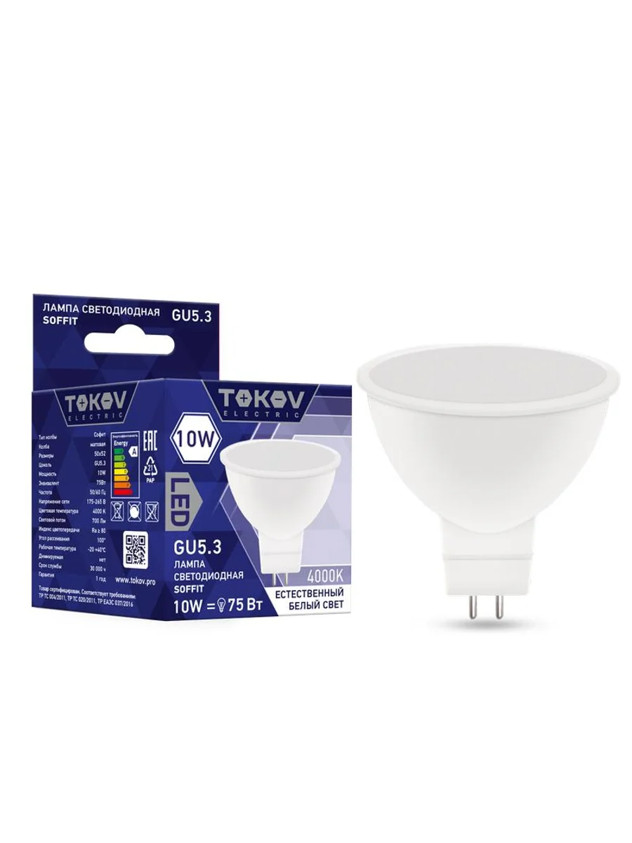 Лампа светодиодная 10Вт Soffit 4000К GU5.3 176-264В TOKOV ELECTRIC TKE-MR16-GU5.3-10-4K - купить в KeepBuilding | KeepBuilding