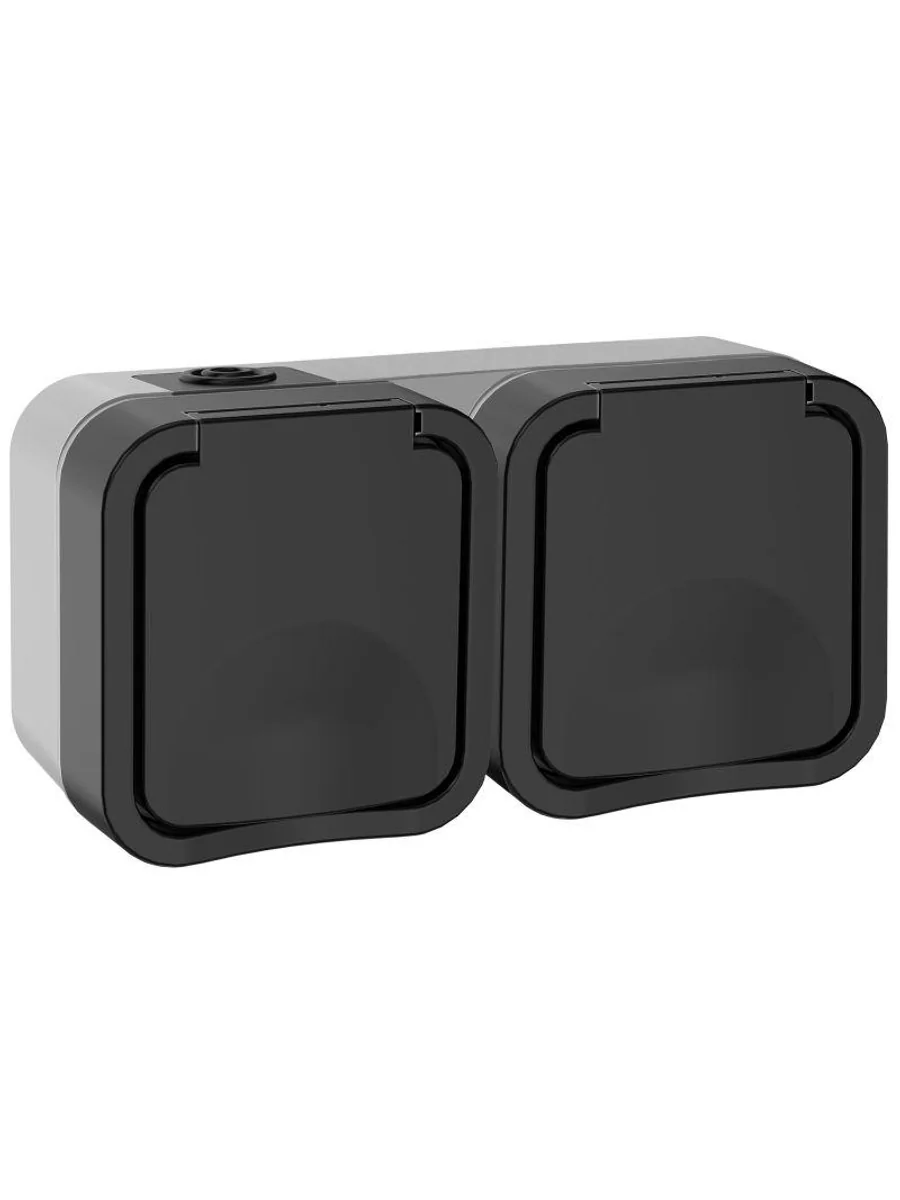 Розетка 2-м ОП TORS 16А IP55 TS122 горизонт. с заземл. с крышкой графит IEK TS-R26-16-55-G-K53