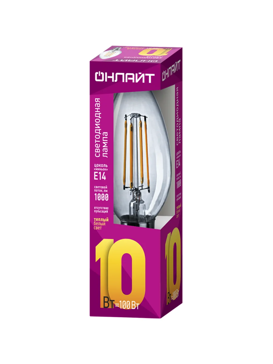 Лампа светодиодная филаментная 80 894 OLL-F-C35-10-230-2.7K-E14 10Вт свеча прозрачная 2700К тепл. бел. E14 1000лм 220-240В ОНЛАЙТ 80894 - купить в KeepBuilding | KeepBuilding