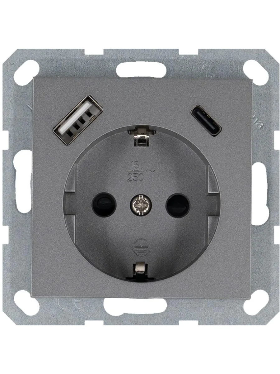 Розетка Shuko 16А с заземл. защ. шторки с 2-мя заряд. устройствами USB тип A+C 25Вт механизм алюм. Jasmart G5501USB-25S - купить в KeepBuilding | KeepBuilding