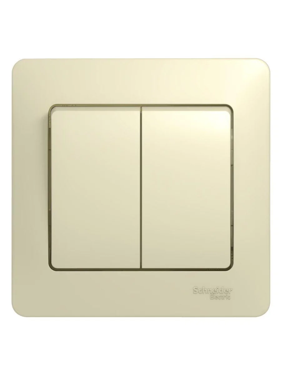 Выключатель Systeme Electric (ранее Schneider Electric) серии Glossa (в сборе, цвет бежевый) двухклавишный подходит для сетей 250 В, на ток 10 А. - Двухклавишный выключатель позволяет управлять двумя источниками света с одной точки. - Выполнен из материала PС+ASA, стойкого к УФ-излучению и появлению царапин. - Эргономичные клеммы расположены в два ряда: сверху и снизу.