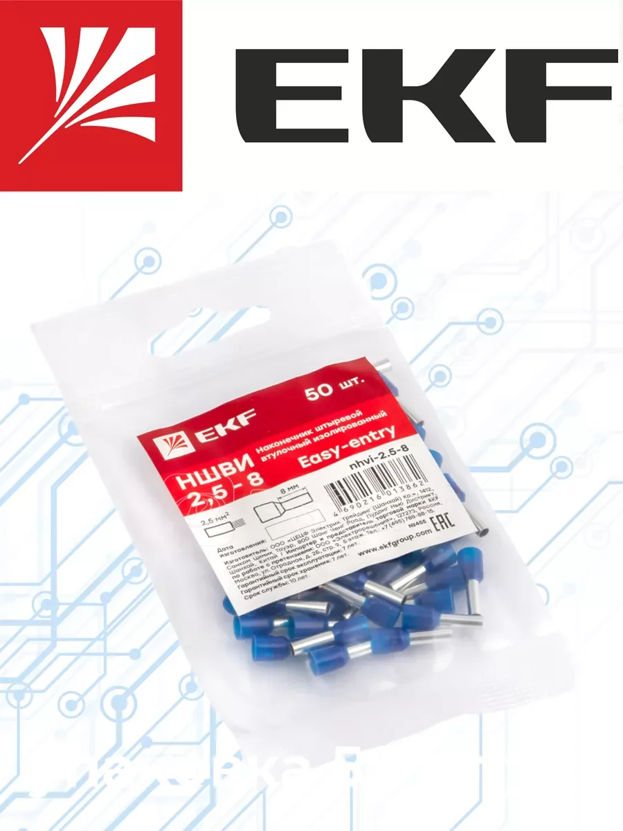Одинарные втулочные наконечники НШвИ EKF PROxima являются единственными специально разработанными наконечниками под опрессовку, которые полностью заменяют обязательный процесс облуживания многопроволочных медных проводов (типа ПВ-3, ПВС и т. п.) при монтаже различного электрооборудования. Втулочные наконечники состоят из медной луженой трубки, один конец которой развальцован для облегчения ввода многожильного провода и изолирующей манжеты из полипропилена. Технология Easy Entry для легкого монтажа.