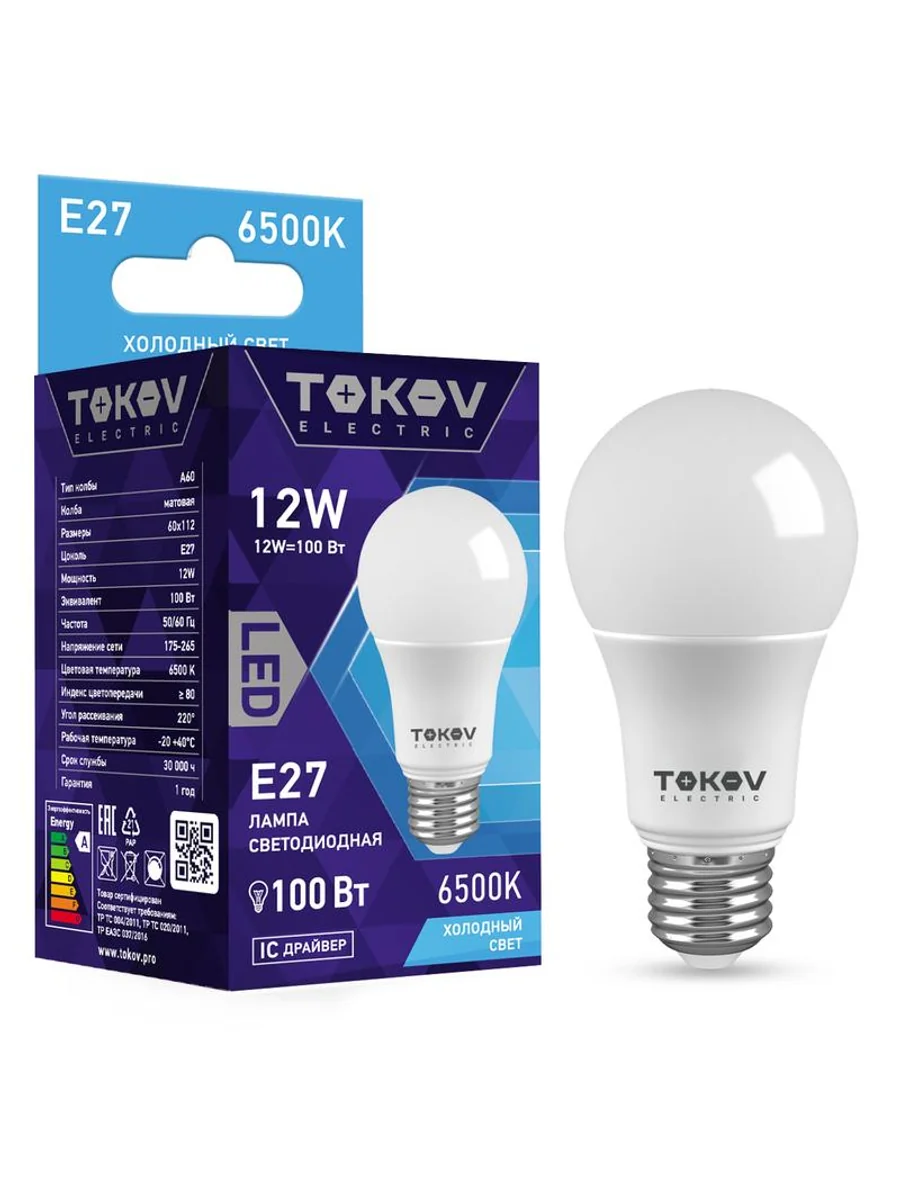 Лампа светодиодная 12Вт А60 6500К Е27 176-264В TOKOV ELECTRIC TKE-A60-E27-12-6.5K - купить в KeepBuilding | KeepBuilding