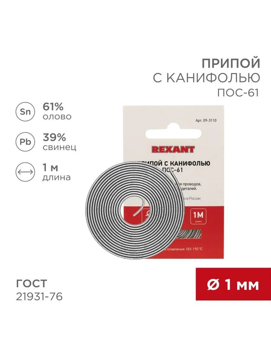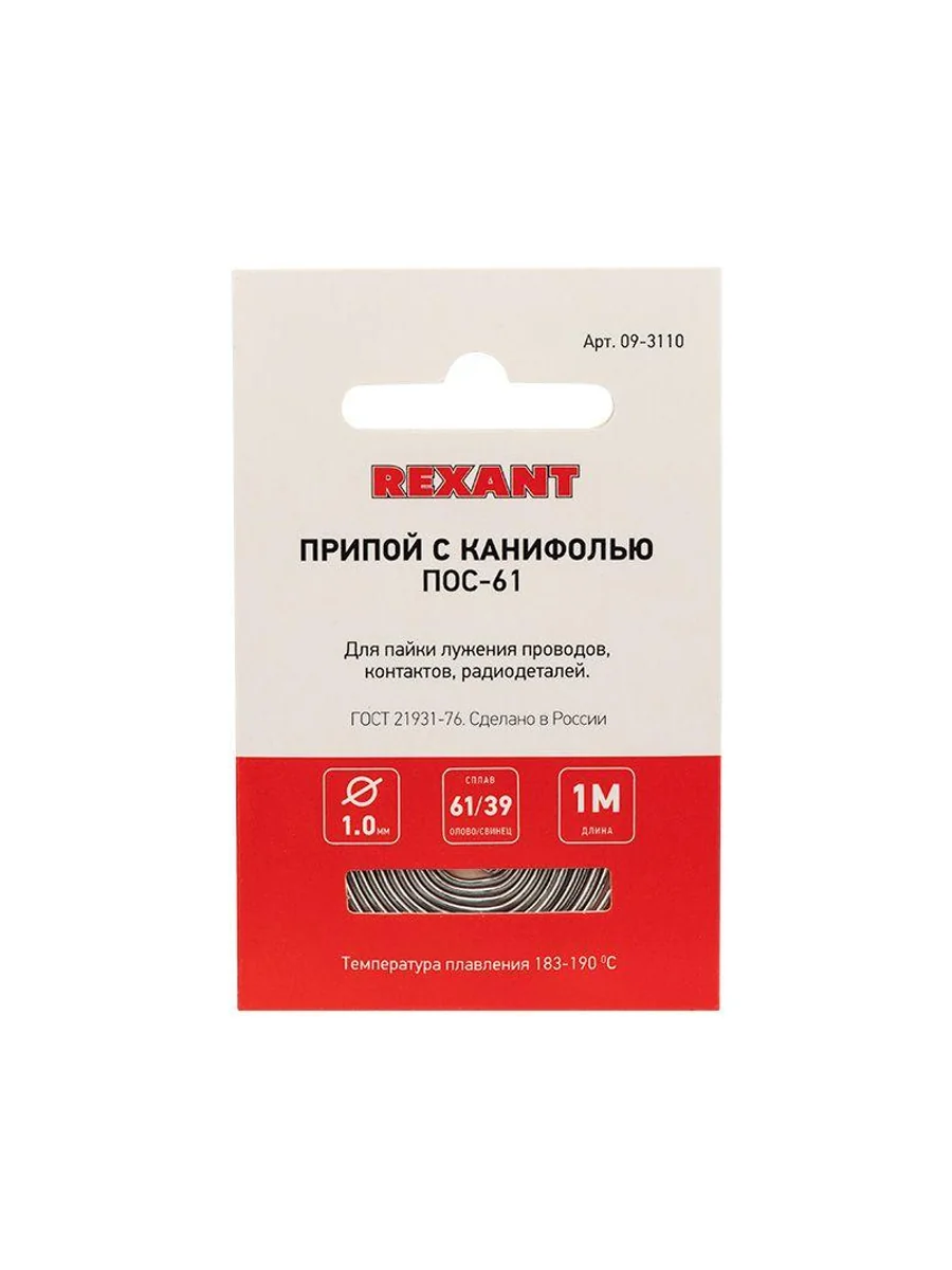 Припой ПОС-61 предназначен для пайки и лужения деталей электро- и радиоаппаратуры, точных приборов, печатных плат, медицинской техники. Особенно эффективен при работе с элементами, чувствительными к перегреву. Представляет собой проволоку из сплава олова (61 %) и свинца (39 %), скрученную в катушку. В её структуре также содержится специальный флюс без запаха — 2.2 %, что позволяет сделать паяное соединение более прочным. Как действует припой: нагреваясь до определенной температуры (183...190 °C) он расплавляется, смачивает спаиваемый металл, растекается по нему, заполняя место между соединяемыми деталями. Припой ПОС-61 обладает такими свойствами, как: устойчивость к коррозии, создание механической прочности спаянного соединения, обладание удельной проводимостью (для токоведущих элементов). Основные характеристики: Диаметр припоя: 1.0 мм Состав: олово (61 %) и свинец (39 %) Длина: 1 метр ГОСТ 21931-76 Сделано в России