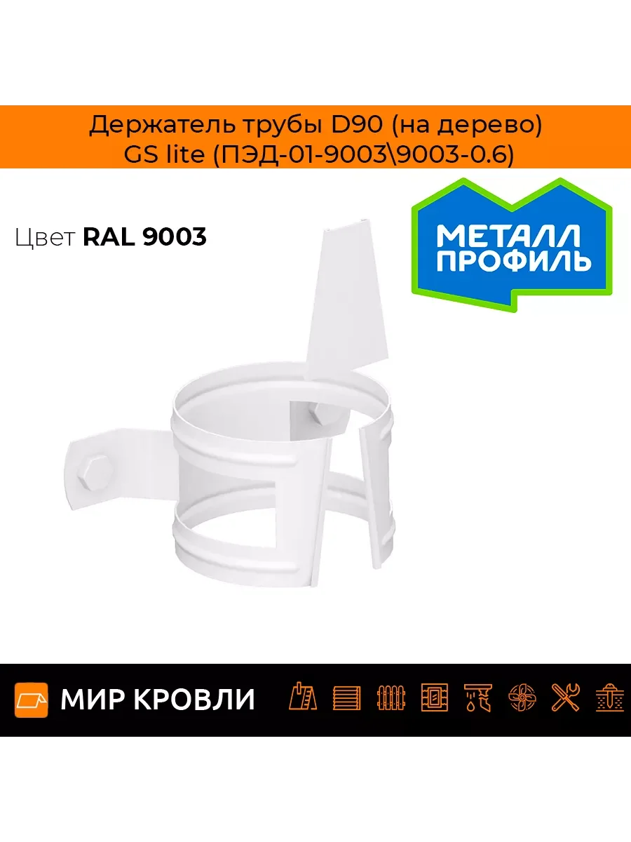 Система водоотведения необходима для защиты крыши и фасадов от агрессивного влияния воды, Держатель трубы (на дерево) МЕТАЛЛ ПРОФИЛЬ GS lite D90 Ral 9003 — её неотъемлемая часть. Стальная основа обеспечивает жёсткость; водосточные системы отлично выдерживает внешние воздействия и не подвергается ржавчине. Обработка покрытием Полиэстер двухсторонний оказывает положительное влияние на срок эксплуатации и укрепляет защитные и декоративные свойства Держатель трубы (на дерево) МЕТАЛЛ ПРОФИЛЬ GS lite D90 Ral 9003. Кровля 9003 Белый украсит любые здания, независимо от их стиля.