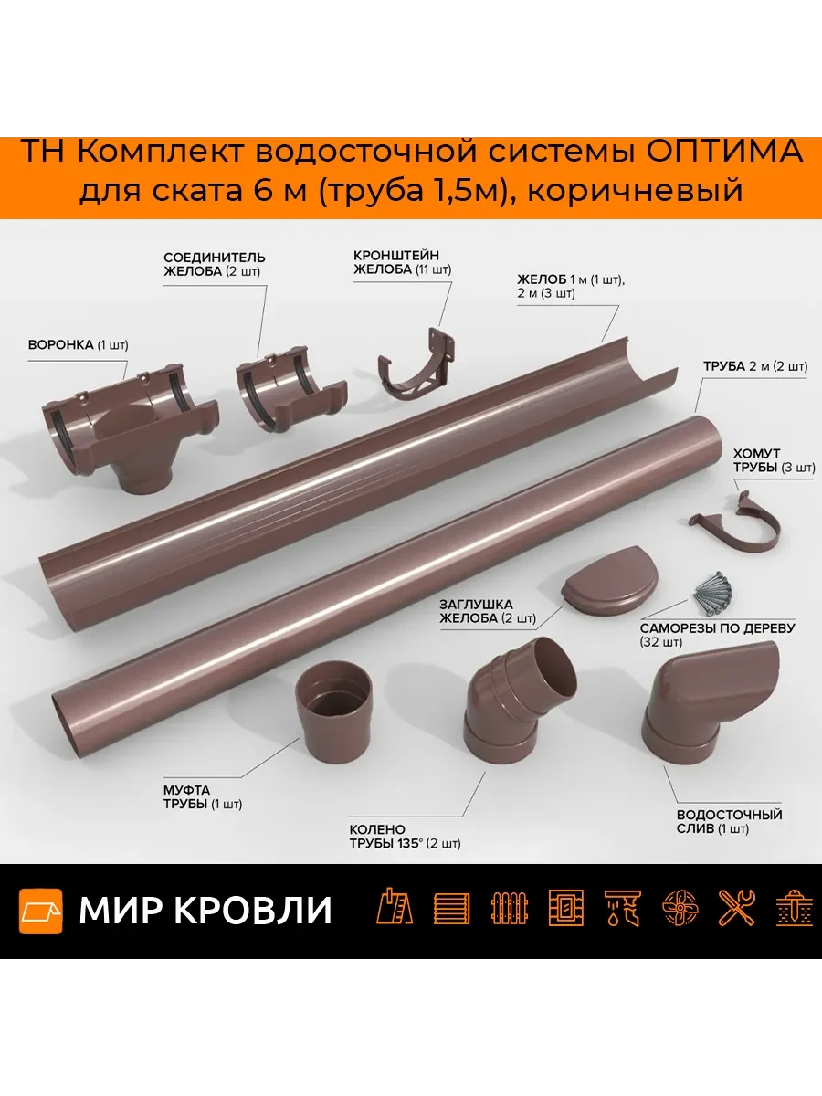 Комплект водосточной системы ОПТИМА для ската 6м(труба 1,5м) - купить в KeepBuilding | KeepBuilding