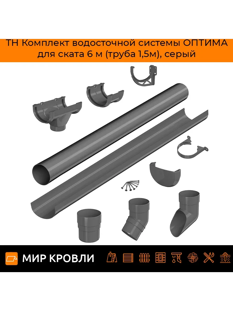 Комплект водосточной системы ОПТИМА для ската 6м(труба 1,5м) - купить в KeepBuilding | KeepBuilding