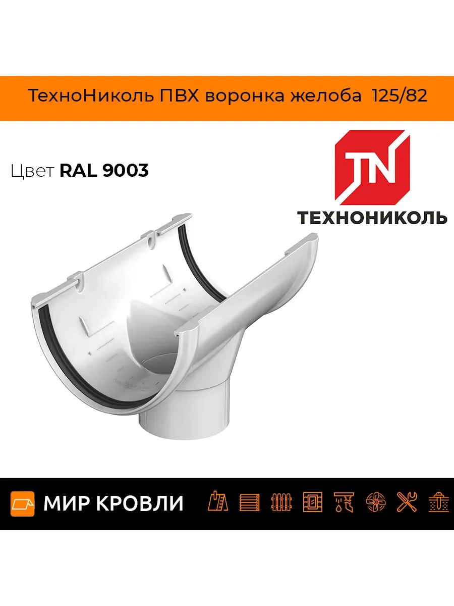 Элемент отводит собранную с кровли воду из желоба в стояк водосточной трубы. Двойное крепление воронки к лобовой доске дает конструкции дополнительную жесткость, монтаж элемента не требует дополнительных кронштейнов желоба.