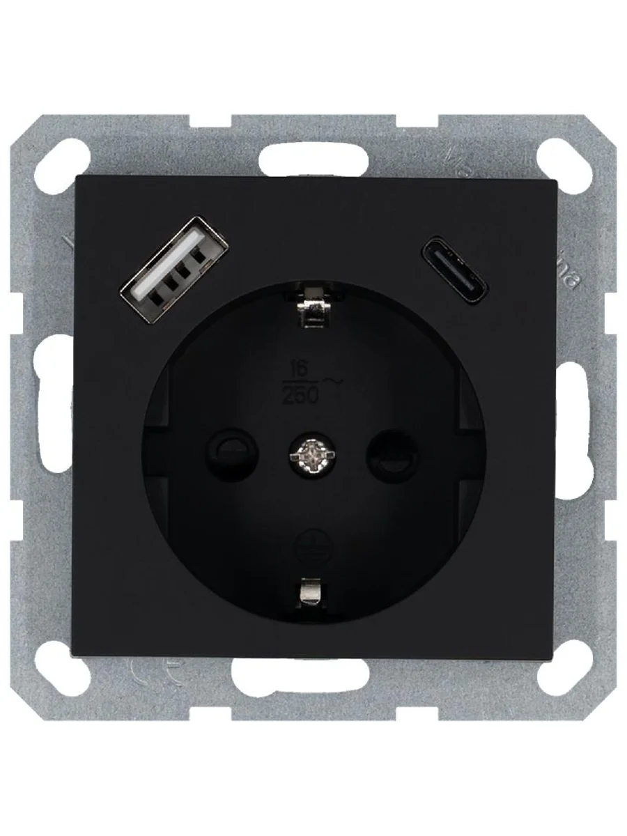 Розетка Shuko 16А с заземл. защ. шторки с 2-мя заряд. устройствами USB тип A+C 25Вт механизм черн. матов. soft touch Jasmart G5501USB-25PB - купить в KeepBuilding | KeepBuilding