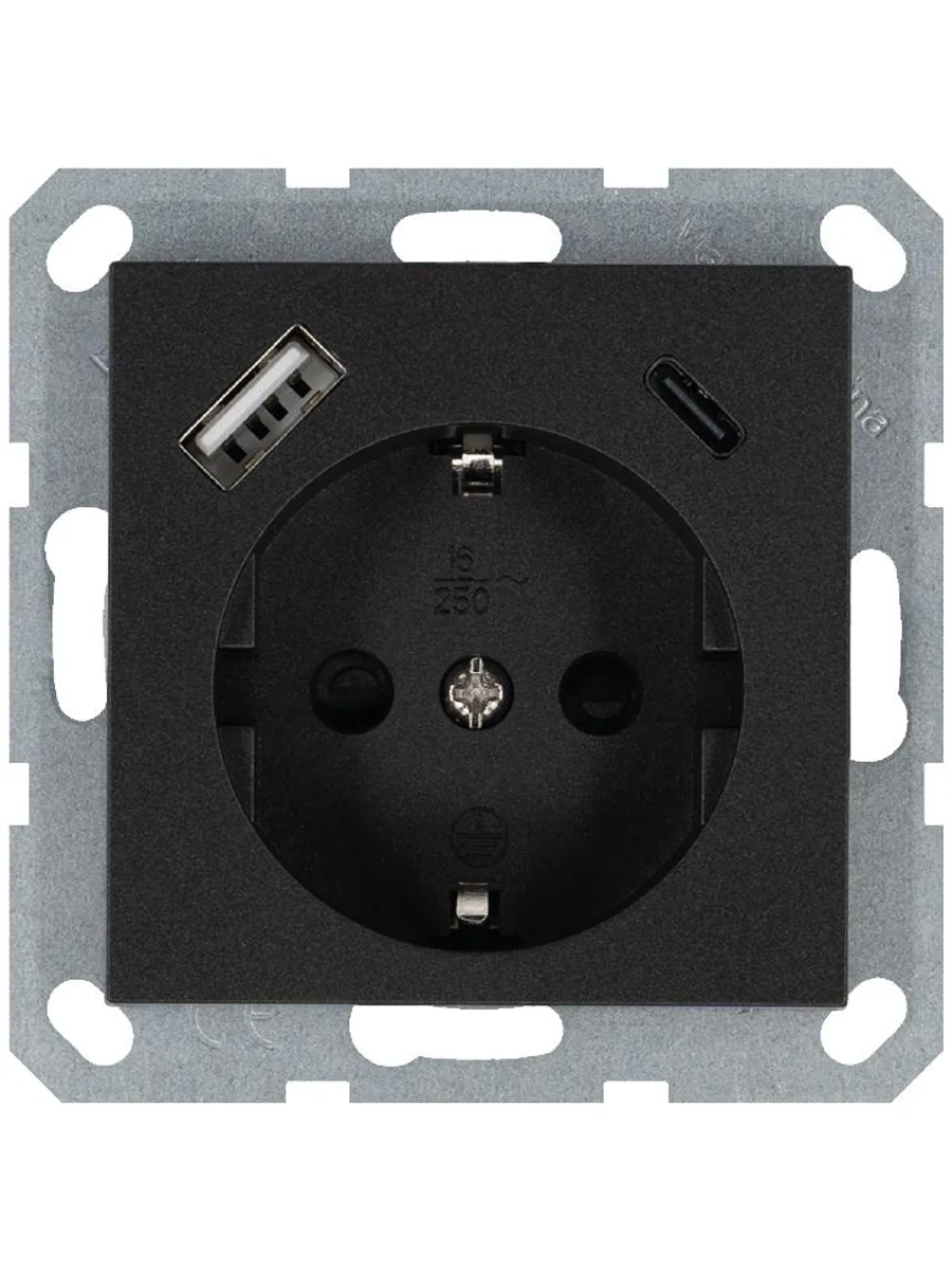 Розетка Shuko 16А с заземл. защ. шторки с 2-мя заряд. устройствами USB тип A+C 25Вт механизм антрацит Jasmart G5501USB-25B - купить в KeepBuilding | KeepBuilding