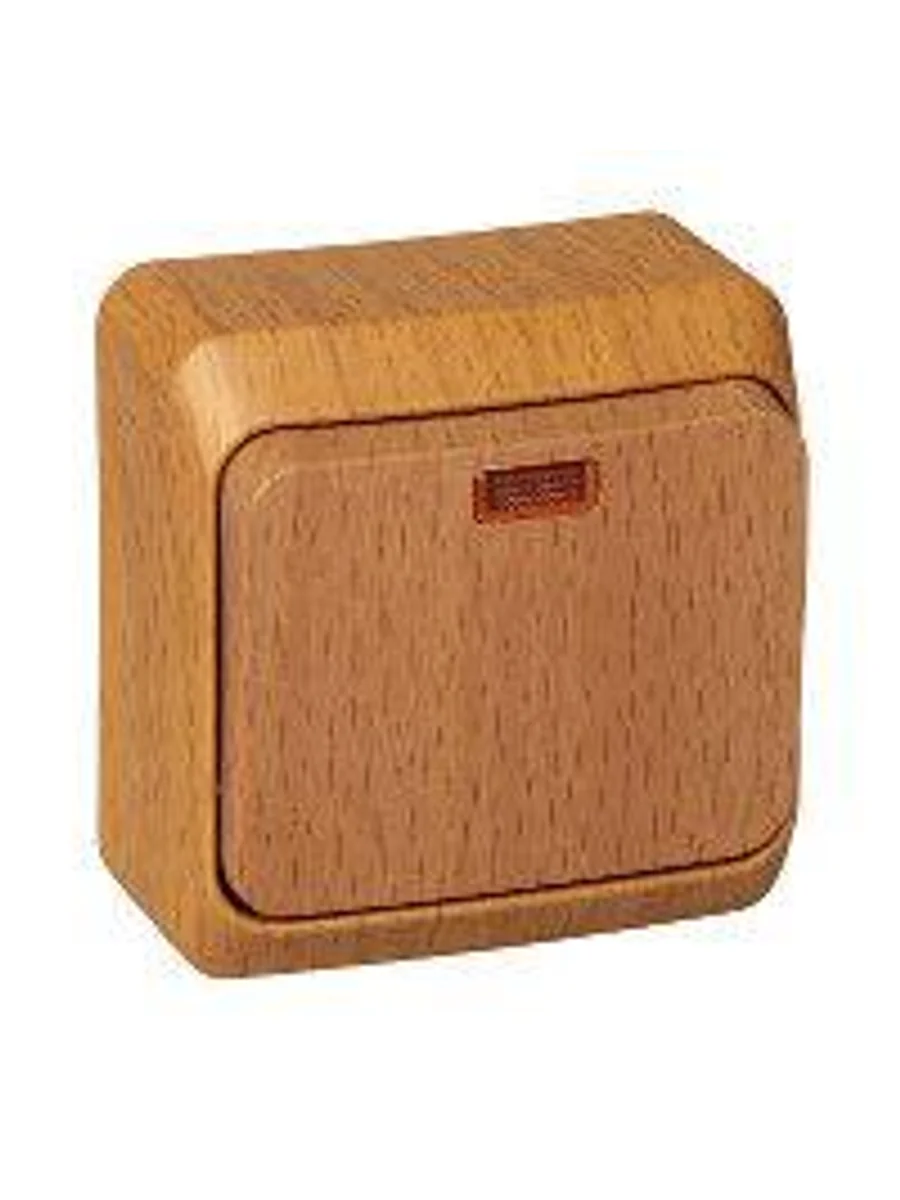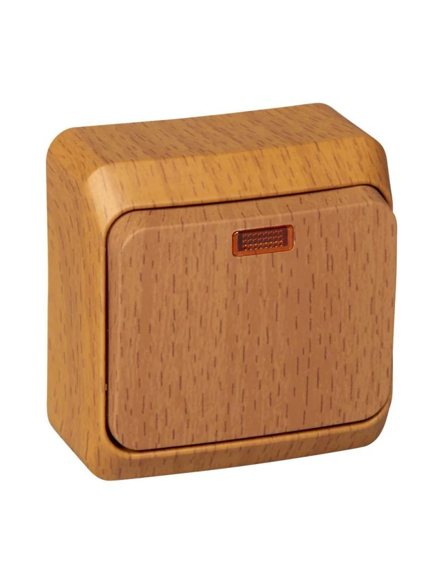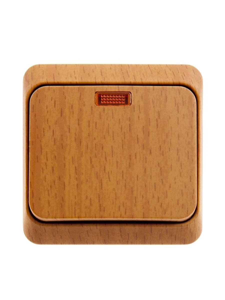 Выключатель Systeme Electric (ранее Schneider Electric) ЭТЮД (бук, открытой установки) одноклавишный предназначен для применения в сетях до 250В, на ток до 10А. Наличие подсветки делает его легко находимым при отсутствии освещения. Выключатель подходит для большинства типов ламп, включая люминесцентные. Изделия цвета Бук обладают уникальным рисунком, напоминающим древесный сруб. Сделано в России.
