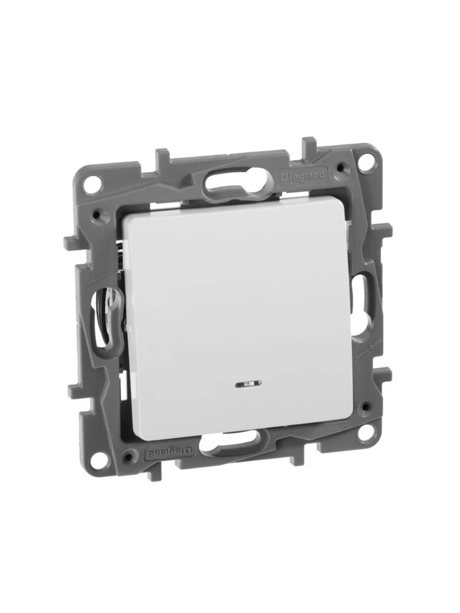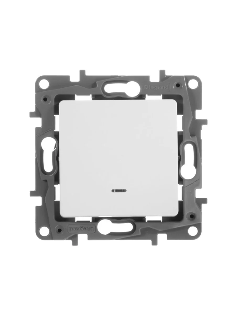 Переключатель с подсветкой одноклавишный ETIKA для скрытого монтажа, номинальный ток 10 А. Предназначен для управления нагрузкой с одного или с двух мест.