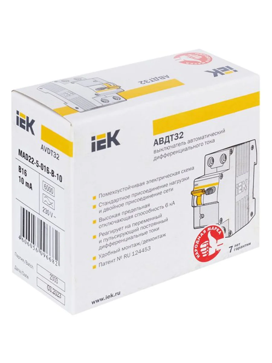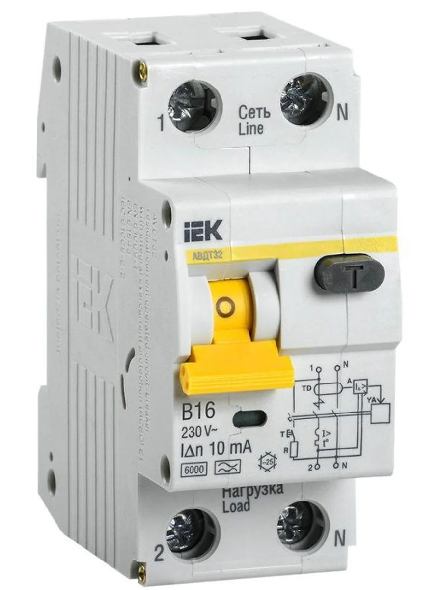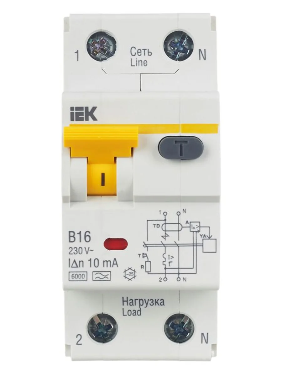 Выключатель автоматический дифференциального тока 2п (1P+N) B 16А 10мА тип A 6кА АВДТ-32 KARAT IEK MAD22-5-016-B-10