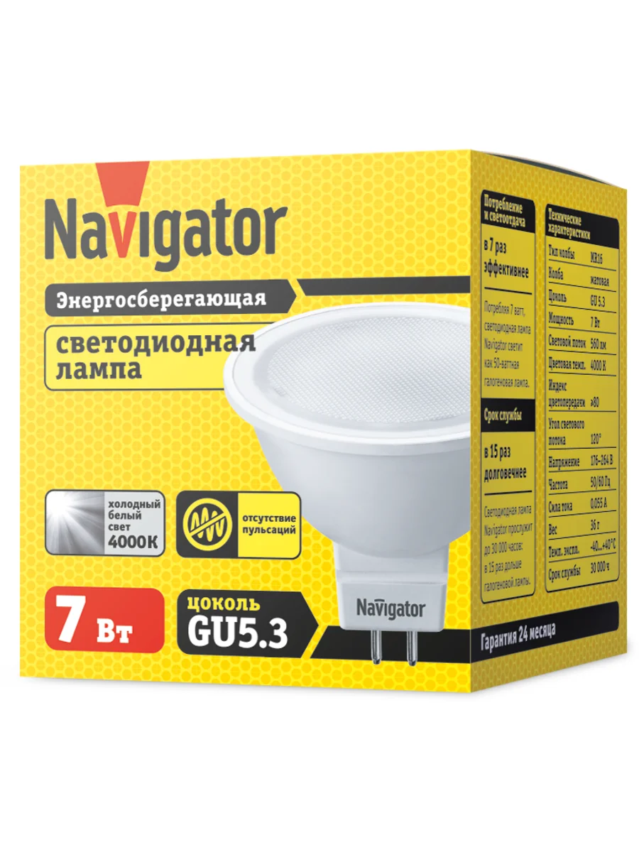 Лампа светодиодная 94 245 NLL-MR16-7-230-4K-GU5.3 7Вт 4000К нейтр. бел. GU5.3 500лм 220-240В Navigator 94245 - купить в KeepBuilding | KeepBuilding