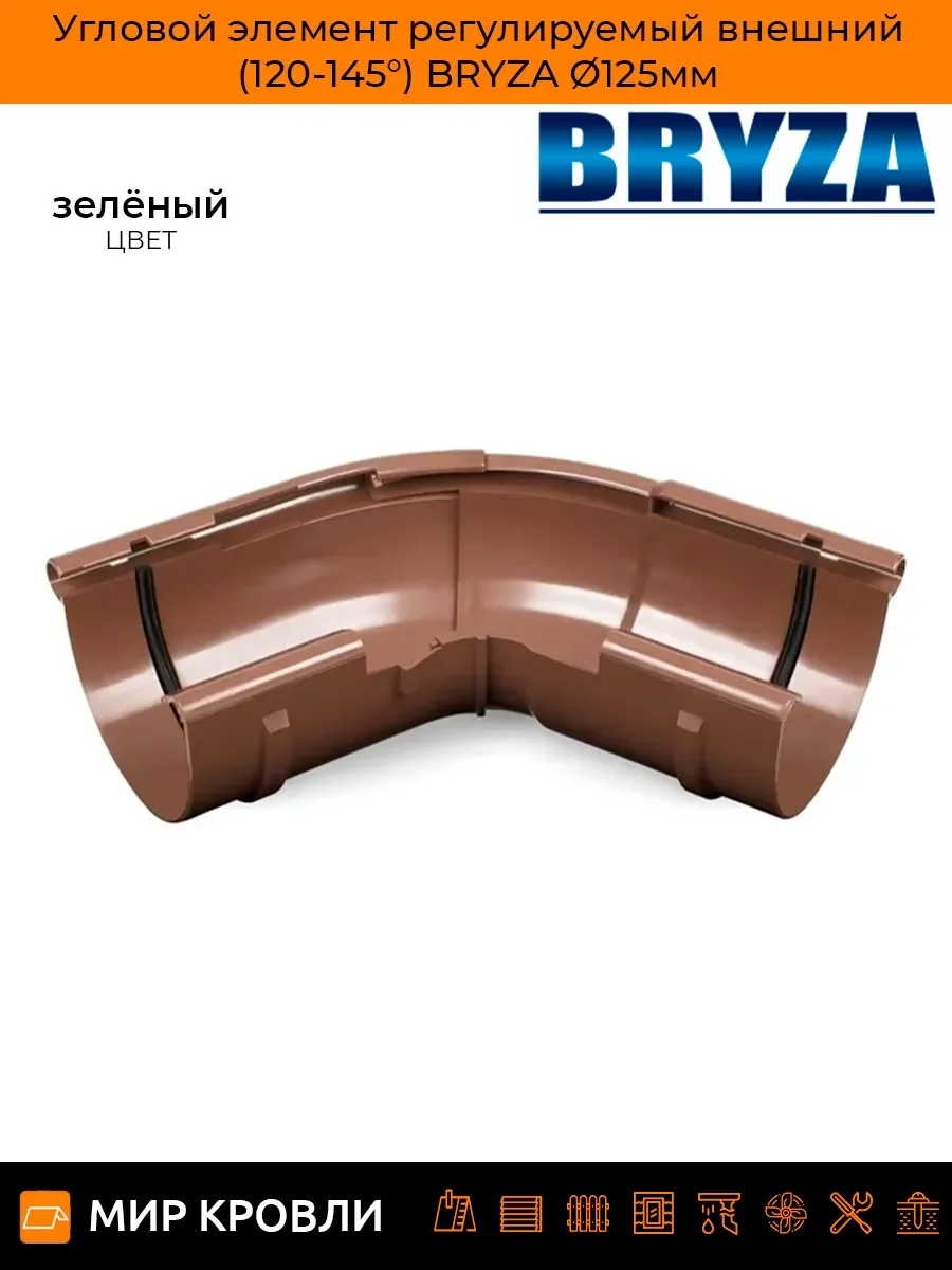Угловой элемент регулируемый внешний BRYZA Ø125мм предназначен для использования в системах водостока и обеспечивает гибкость монтажа. Этот элемент позволяет корректировать угол направления воды от 120 до 145 градусов, обеспечивая оптимальную эффективность отвода воды от крыши здания. Изготовлен из высококачественных материалов, гарантирующих долговечность и надежность. Бренд BRYZA известен своим вниманием к деталям и качеству продукции, что делает этот угловой элемент идеальным выбором для строительных проектов, требующих надежности и функциональности.