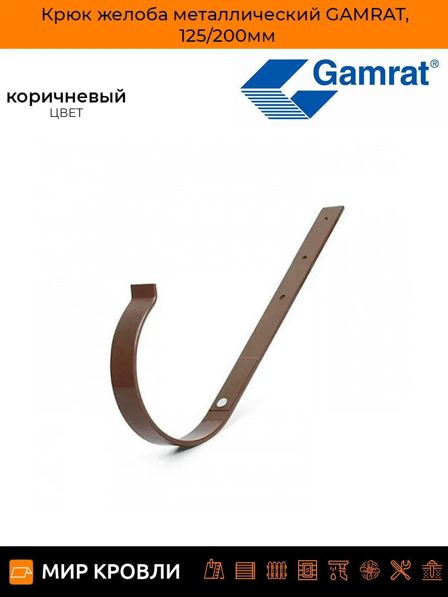 Крюк желоба Гамрат МЕТАЛЛИЧЕСКИЙ служит для крепления желоба, одновременно обеспечивая дополнительную поддержку геометрических параметров желоба. При помощи крюков обеспечивается необходимый уклон для движения воды в желобе в нужном направлении.