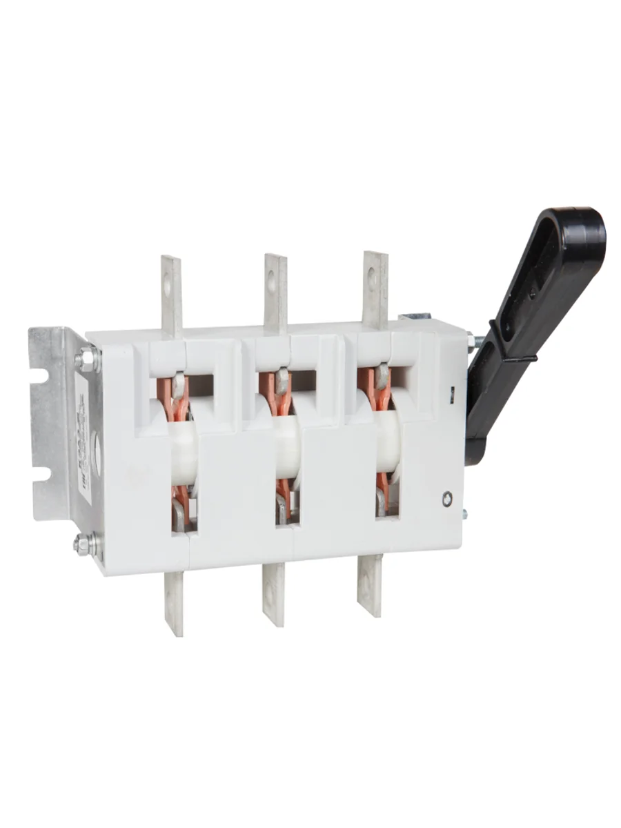 Выключатель-разъединитель 3 полюсный на номинальный ток 400 А, в котором установлена несъемная рукоятка.
