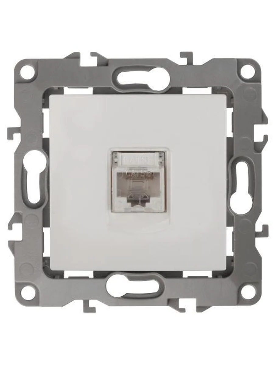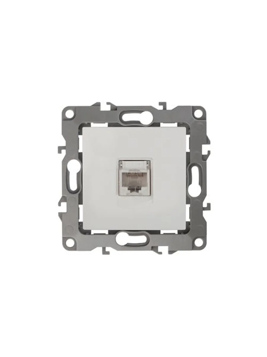 Розетка интернет RJ45 серии Эра 12 скрытой установки механизм цвет белый 12-3107-01. Сделана из поликарбоната. Монтаж в подрозетник производится и на лапки, и на винты. Рамки приобретаются отдельно. Рамки Эра 12: 1 пост 12-5001-хх, 2 поста 12-5002-хх, 3 поста 12-5003-хх, 4 поста 12-5004-хх, 5 постов 12-5005-хх. Рамки Эра 12 Сатин: 1 пост 12-5101-хх, 2 поста 12-5102-хх, 3 поста 12-5103-хх, 4 поста 12-5104-хх, 5 постов - 12-5105-хх