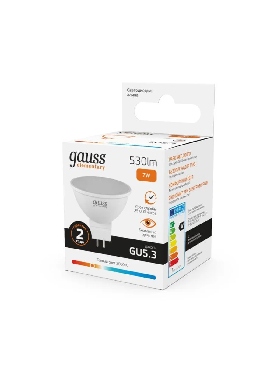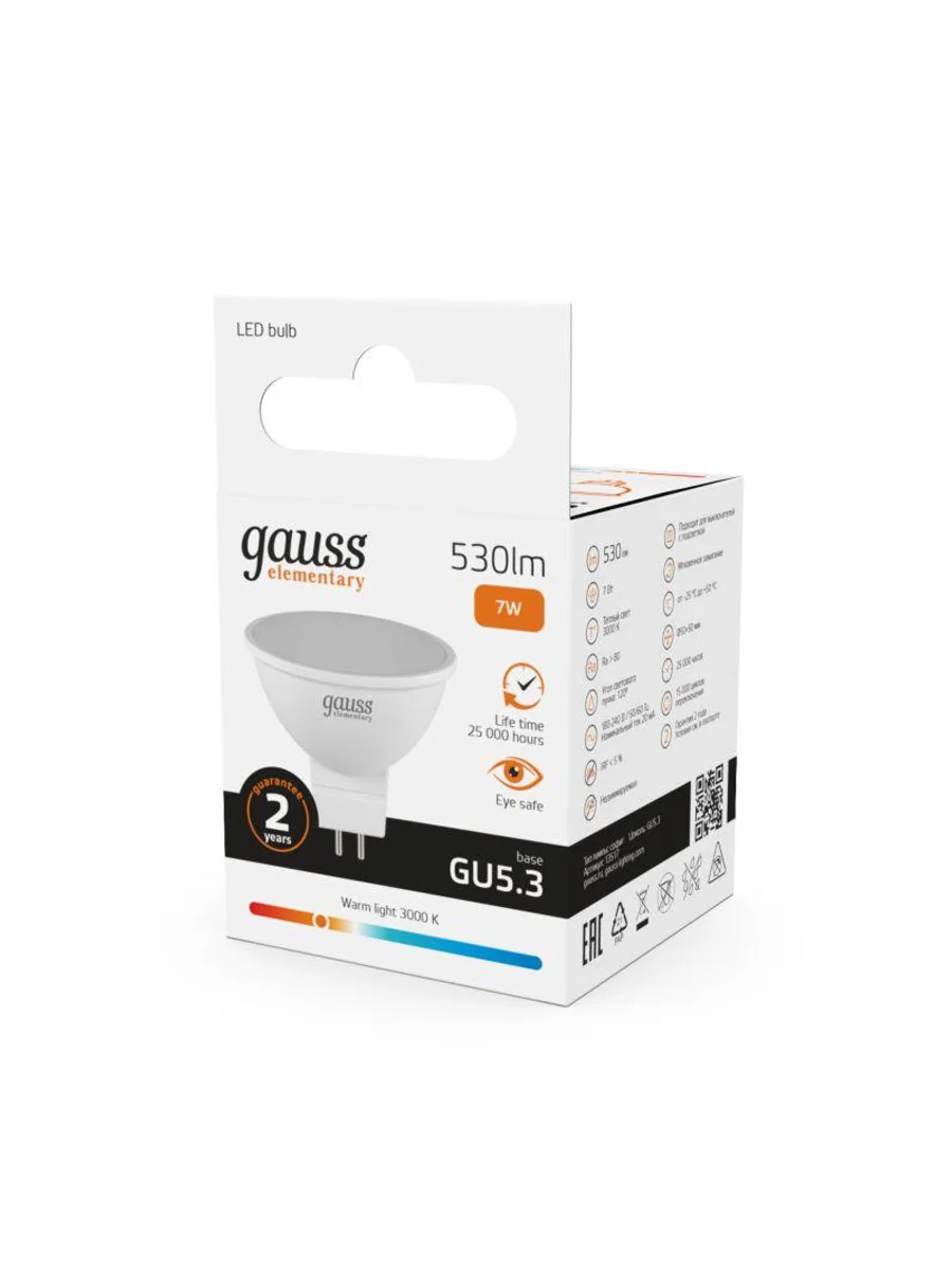 Лампа светодиодная Elementary 7Вт MR16 софит 3000К тепл. бел. GU5.3 530лм GAUSS 13517 - купить в KeepBuilding | KeepBuilding