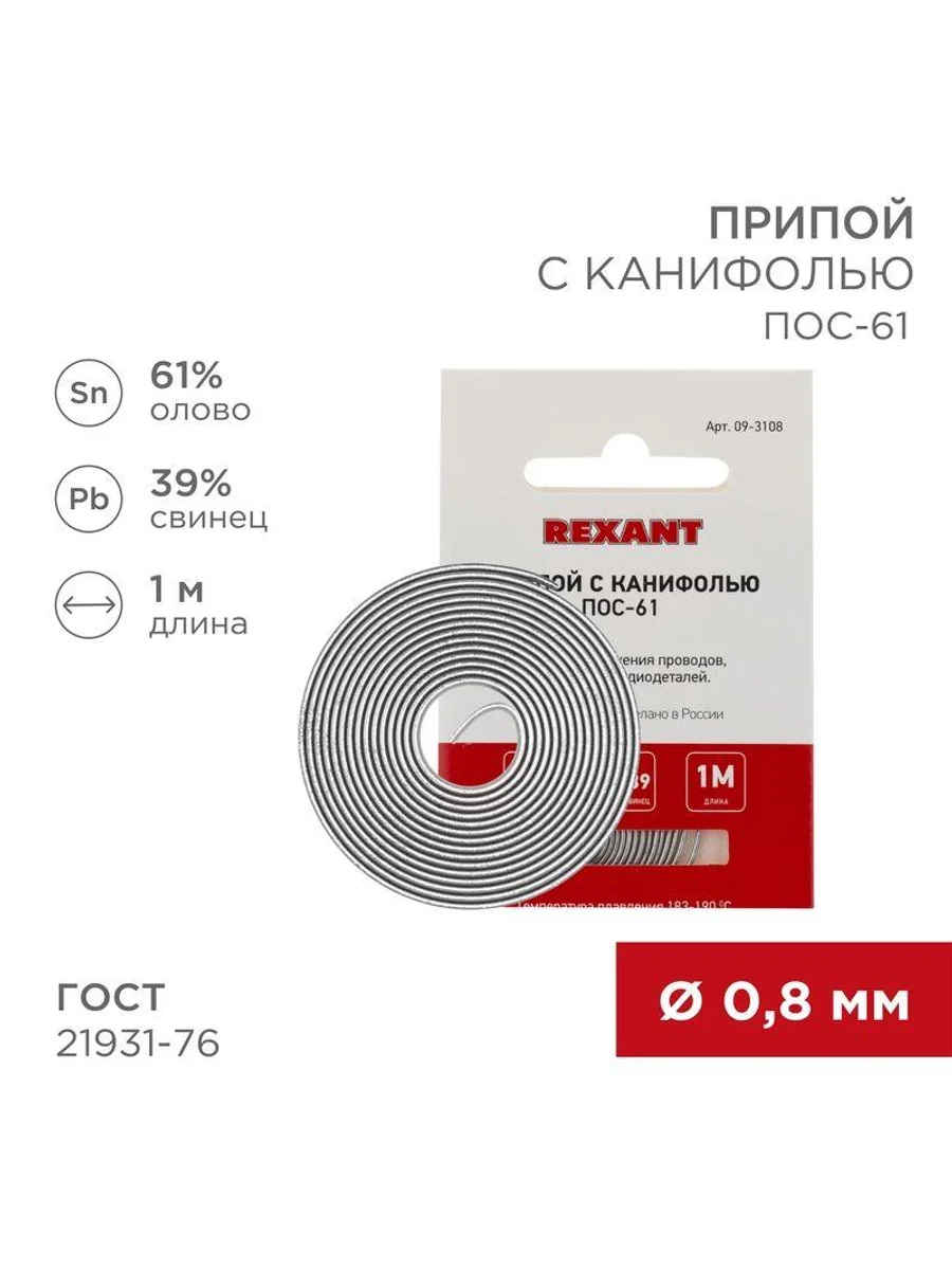 Припой ПОС-61 предназначен для пайки и лужения деталей электро- и радиоаппаратуры, точных приборов, печатных плат, медицинской техники. Особенно эффективен при работе с элементами, чувствительными к перегреву. Представляет собой проволоку из сплава олова (61 %) и свинца (39 %), скрученную в катушку. В её структуре также содержится специальный флюс без запаха — 2.2%, что позволяет сделать паяное соединение более прочным. Как действует припой: нагреваясь до определенной температуры (183...190 °C) он расплавляется, смачивает спаиваемый металл, растекается по нему, заполняя место между соединяемыми деталями. Припой ПОС-61 обладает такими свойствами, как: устойчивость к коррозии, создание механической прочности спаянного соединения, обладание удельной проводимостью (для токоведущих элементов). Основные характеристики: Диаметр припоя: 0.8 мм Состав: олово (61 %) и свинец (39 %) Длина: 1 метр ГОСТ 21931-76 Сделано в России