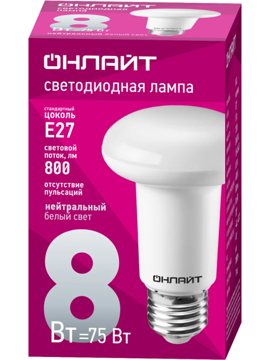 Лампа светодиодная 71 654 OLL-R63-8-230-4K-E27 8Вт 4000К нейтр. бел. E27 660лм 220-240В ОНЛАЙТ 71654 - купить в KeepBuilding | KeepBuilding