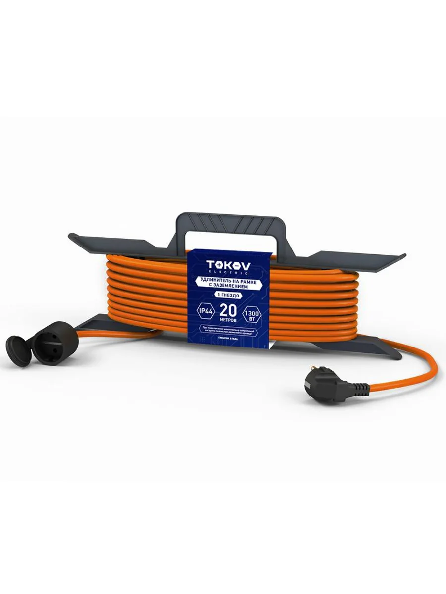 Удлинитель-шнур на рамке 1х20м с заземл. 6А IP44 3х0.75 с защ. крышкой TOKOV ELECTRIC TKE-SR20-075-Z - купить в KeepBuilding | KeepBuilding