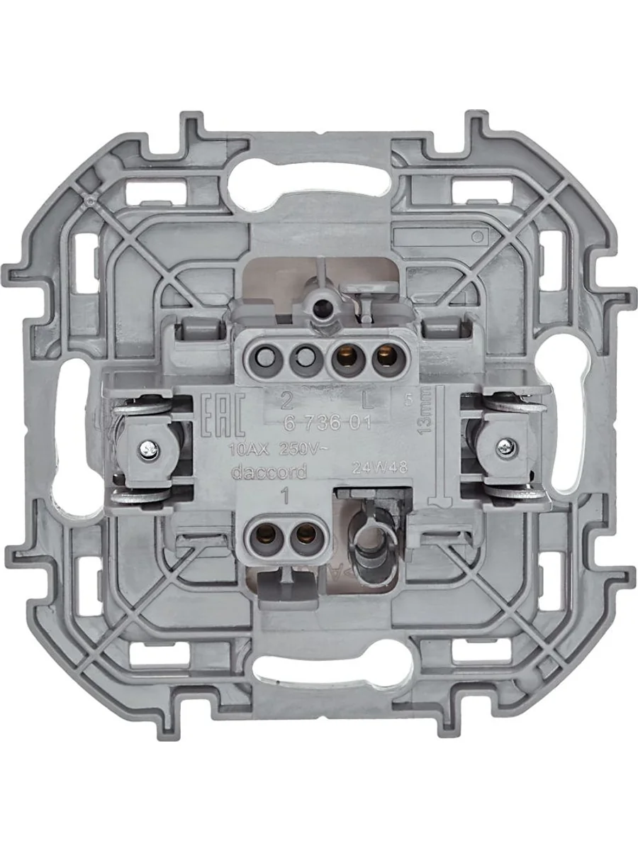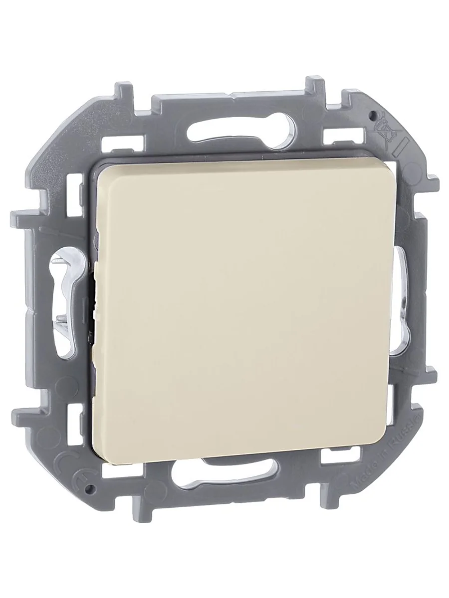 Выключатель одноклавишный скрытого монтажа Inspiria, цвет "Слоновая кость", номинальный ток 10АХ, напряжение ~250В, безвинтовые зажимы. Устанавливается в жилых и общественных помещениях для управления приборами освещения, вентиляции и т.д.