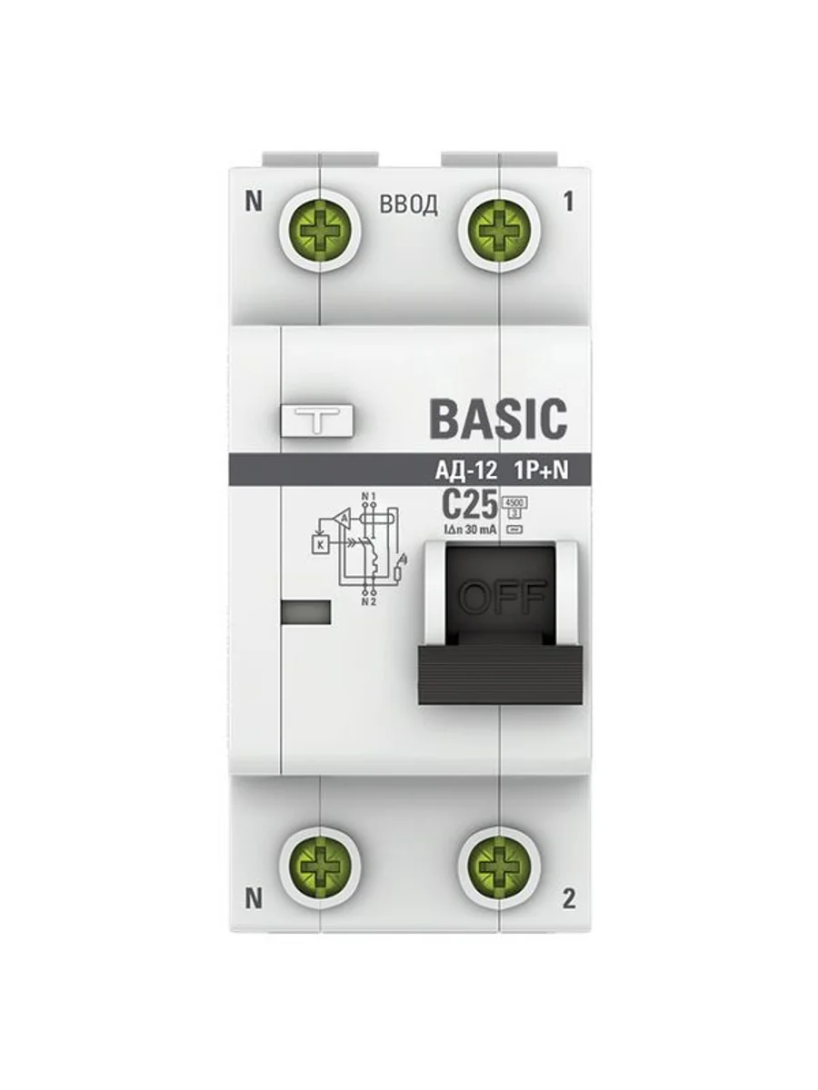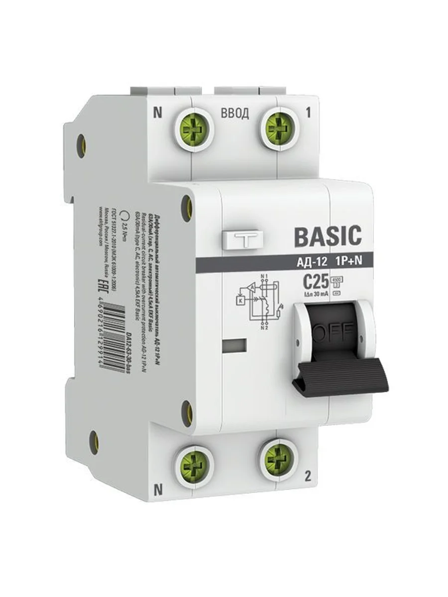 Выключатель автоматический дифференциального тока 2п (1P+N) C 25А 30мА тип AC 4.5кА АД-12 Basic EKF DA12-25-30-bas - купить в KeepBuilding | KeepBuilding