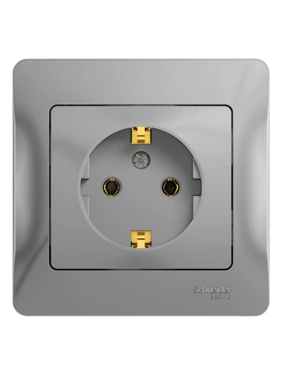 Розетка Systeme Electric (ранее Schneider Electric) серии Glossa (в сборе, цвет алюминий) одинарная без заземления и без шторок подходит для сетей 250 В, на ток 16 А. - Выполнен из материала PС+ASA, стойкого к УФ-излучению и появлению царапин. - Эргономичные клеммы розеток расположены в один ряд.