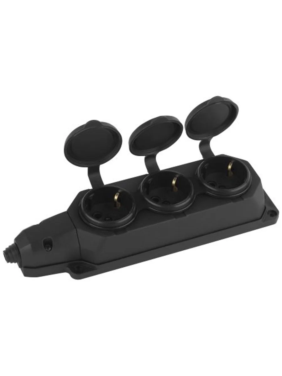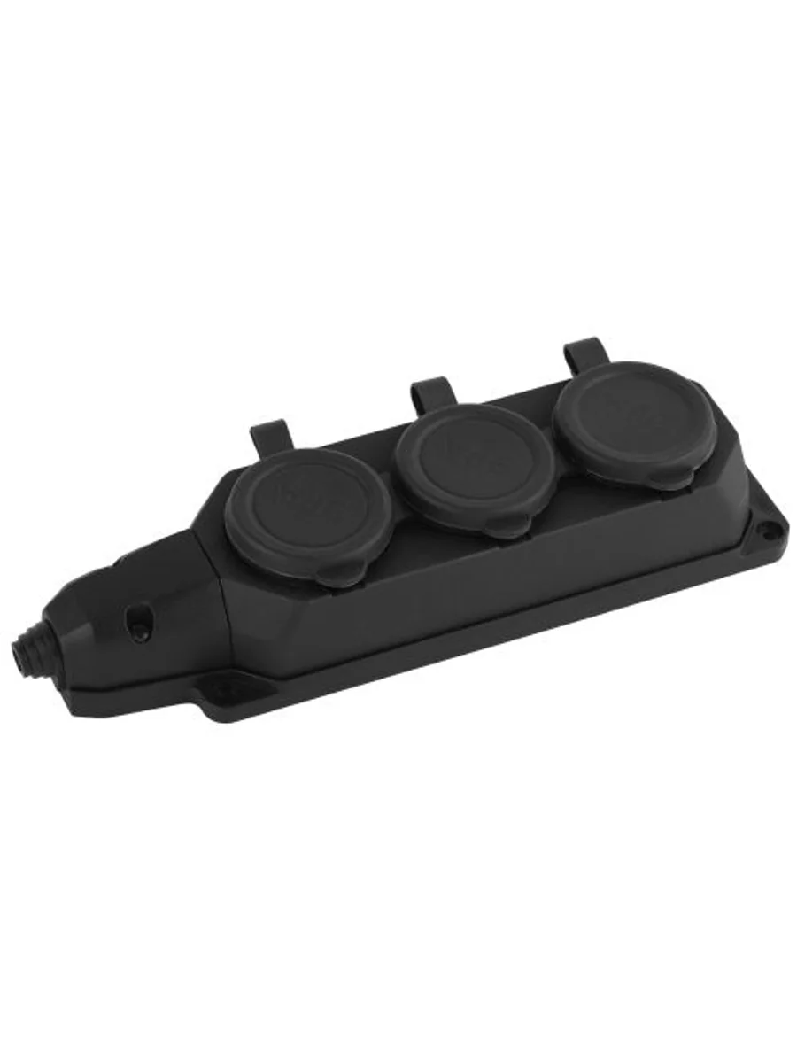 Колодка электрическая каучуковая Эра K-3e-B-IP44 c заземлением, 3 розетки. Корпус выполнен из пыле- и влага- защищенного материала (каучук). Рассчитана на максимальную мощность 16А / 3500 Вт и для подключения кабеля сечением до 2,5 мм2. Электрическая колодка подойдет для тех, кто хочет сделать удлинитель самостоятельно. Также может использоваться как накладные розеточные блоке в подсобных помещениях.