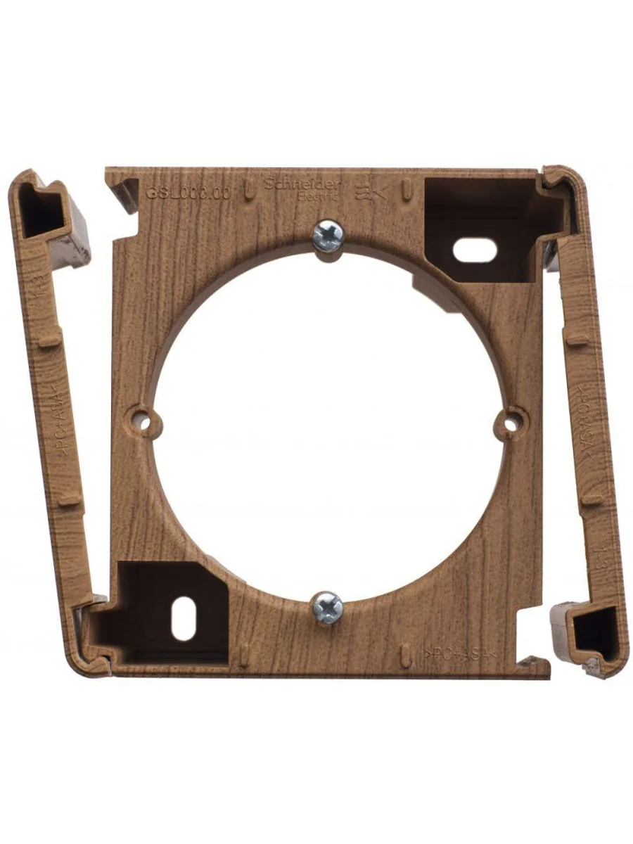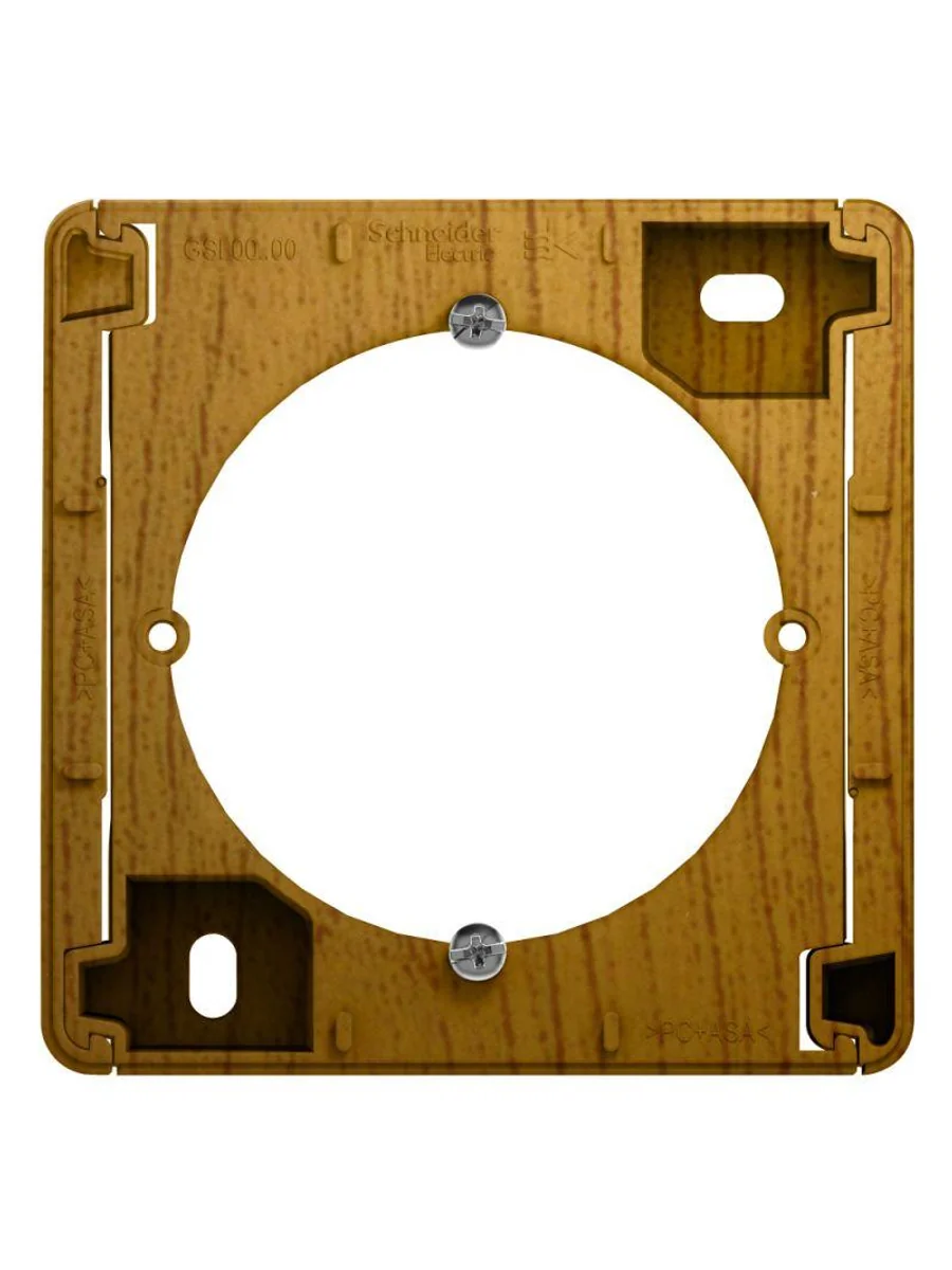 Коробка Systeme Electric (ранее Schneider Electric) серии Glossa (цвет дерево дуб) наружного монтажа. - Позволяет установить любую функцию скрытого монтажа на стену (как изделие открытого монтажа). - Выполнена из материала PС+ASA, стойкого к УФ-излучению и появлению царапин.