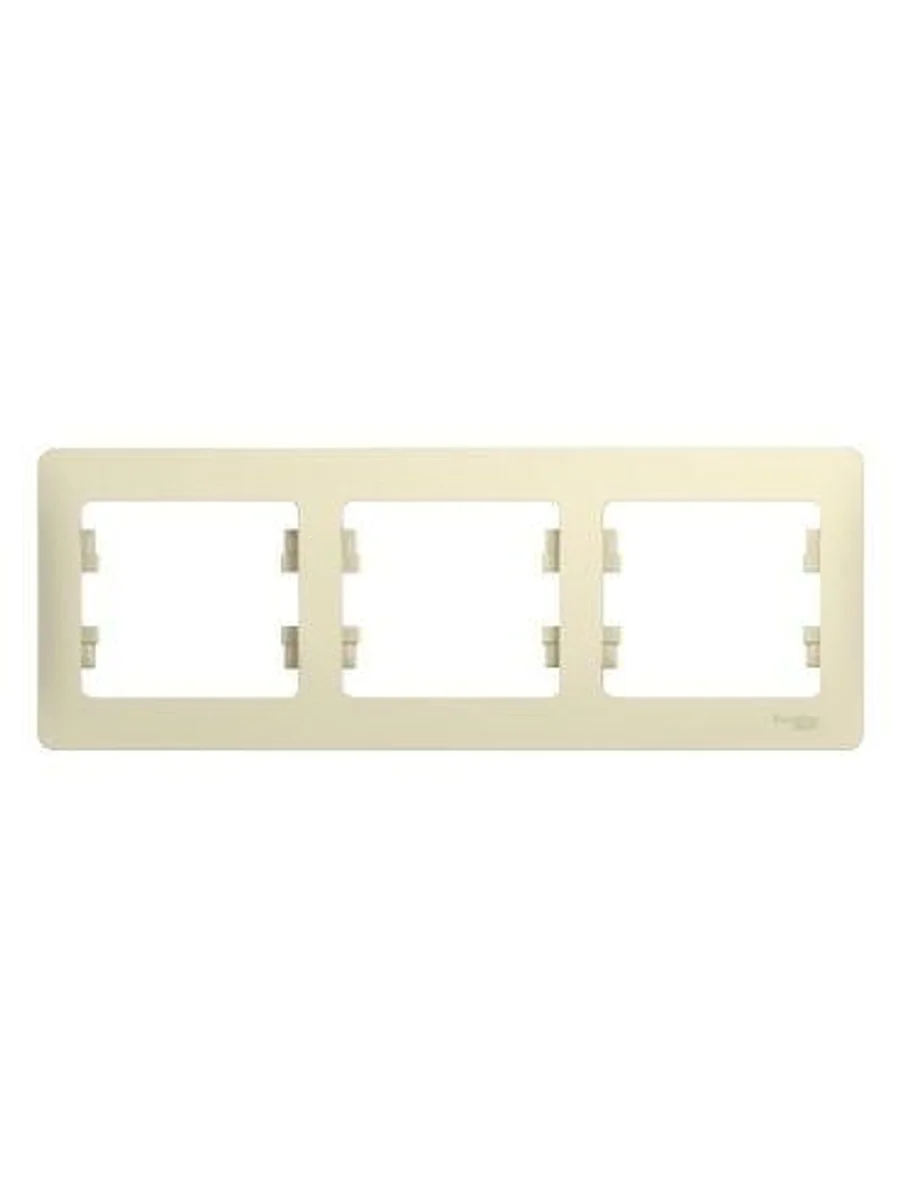 Рамка Systeme Electric серии Glossa (цвет бежевый) трёхместная. - Устанавливается в вертикальном положении. - Выполнена из материала PС+ASA, стойкого к УФ-излучению и появлению царапин. - Позволяет гармонично вписать электроустановочное изделие в интерьер помещения (ранее Schneider Electric MGU2.006.25, NU200644).