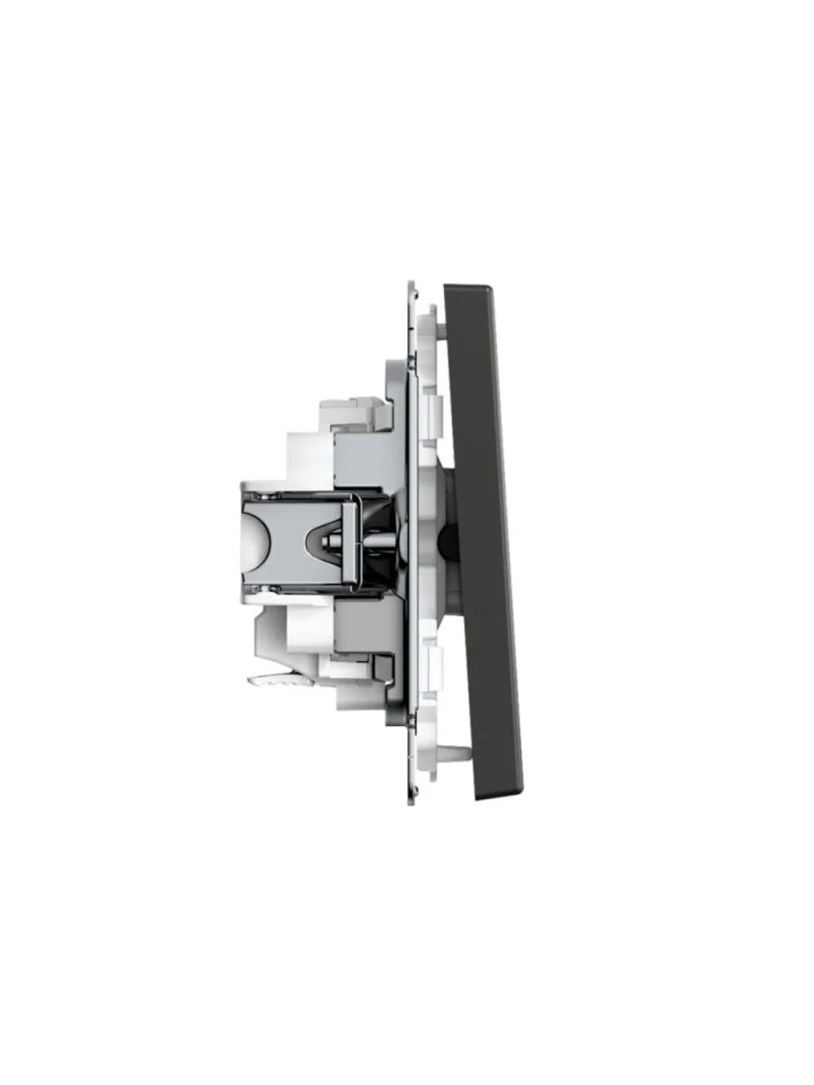 Механизм с быстрозажимными клеммами Systeme Electric серии ArtGallery в цвете базальт выключателя 1-клавишного подходит для сетей 250 В, на ток 10 А. С помощью новых быстрозажимных клемм монтаж стал быстрее. Для подключения не требуется отвертка. Решение для ценителей матовых поверхностей в интерьере, к которым приятно прикоснуться. Лицевые детали из качественного ABS-пластика, устойчивого к царапинам и УФ-излучению. Лучший промышленный дизайн (по итогам премии Минпромторг 2023).
