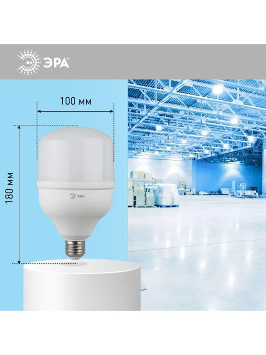 Лампа светодиодная ЭРА Серии Стандарт для освещения производственных, торговых и подсобных помещений. Отличается высокой мощностью, грамотно продуманной системой охлаждения и широким выбором цветовых температур