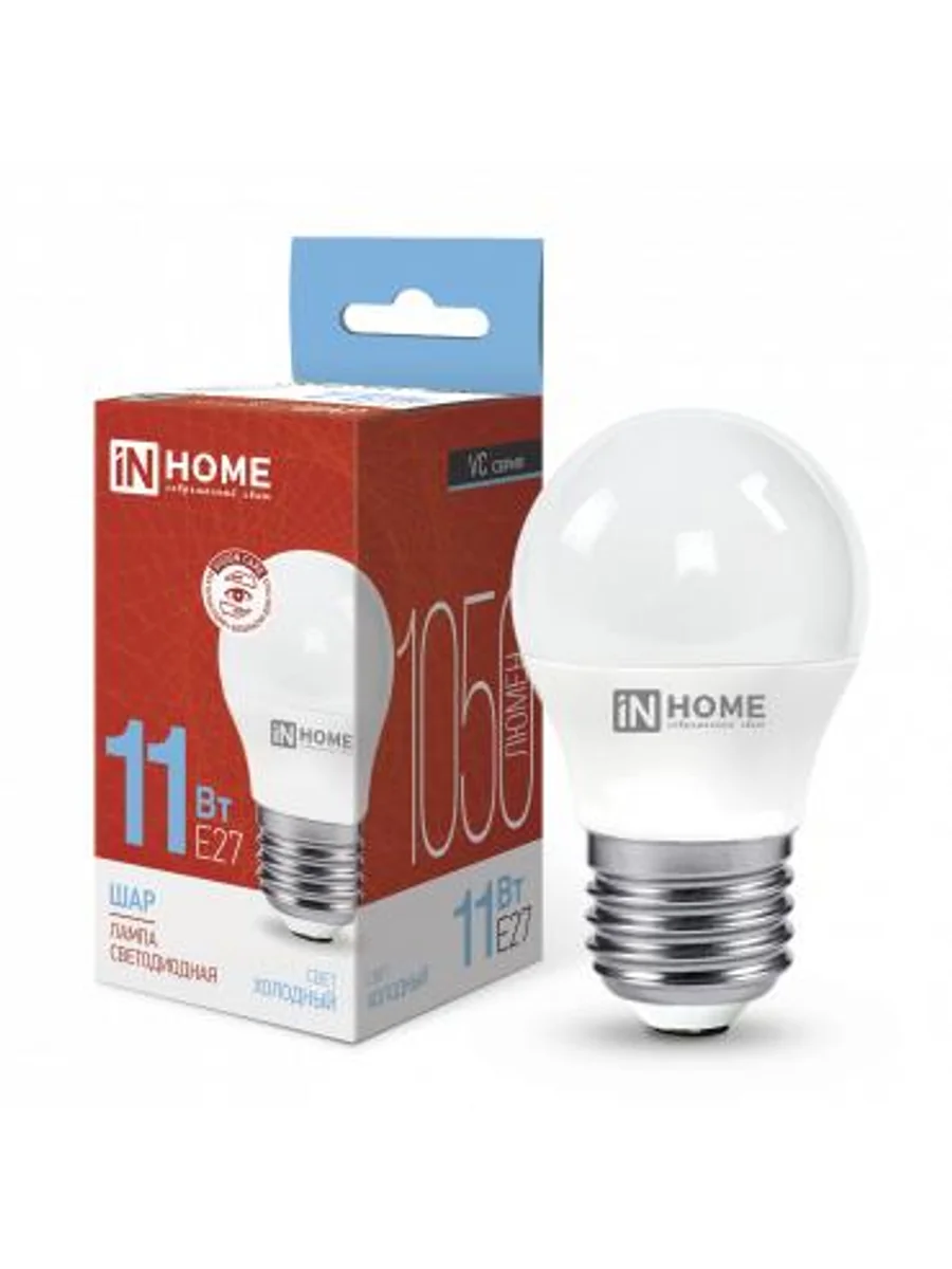 Лампа светодиодная LED-ШАР-VC 11Вт шар 6500К холод. бел. E27 1050лм 230В IN HOME 4690612024943 - купить в KeepBuilding | KeepBuilding