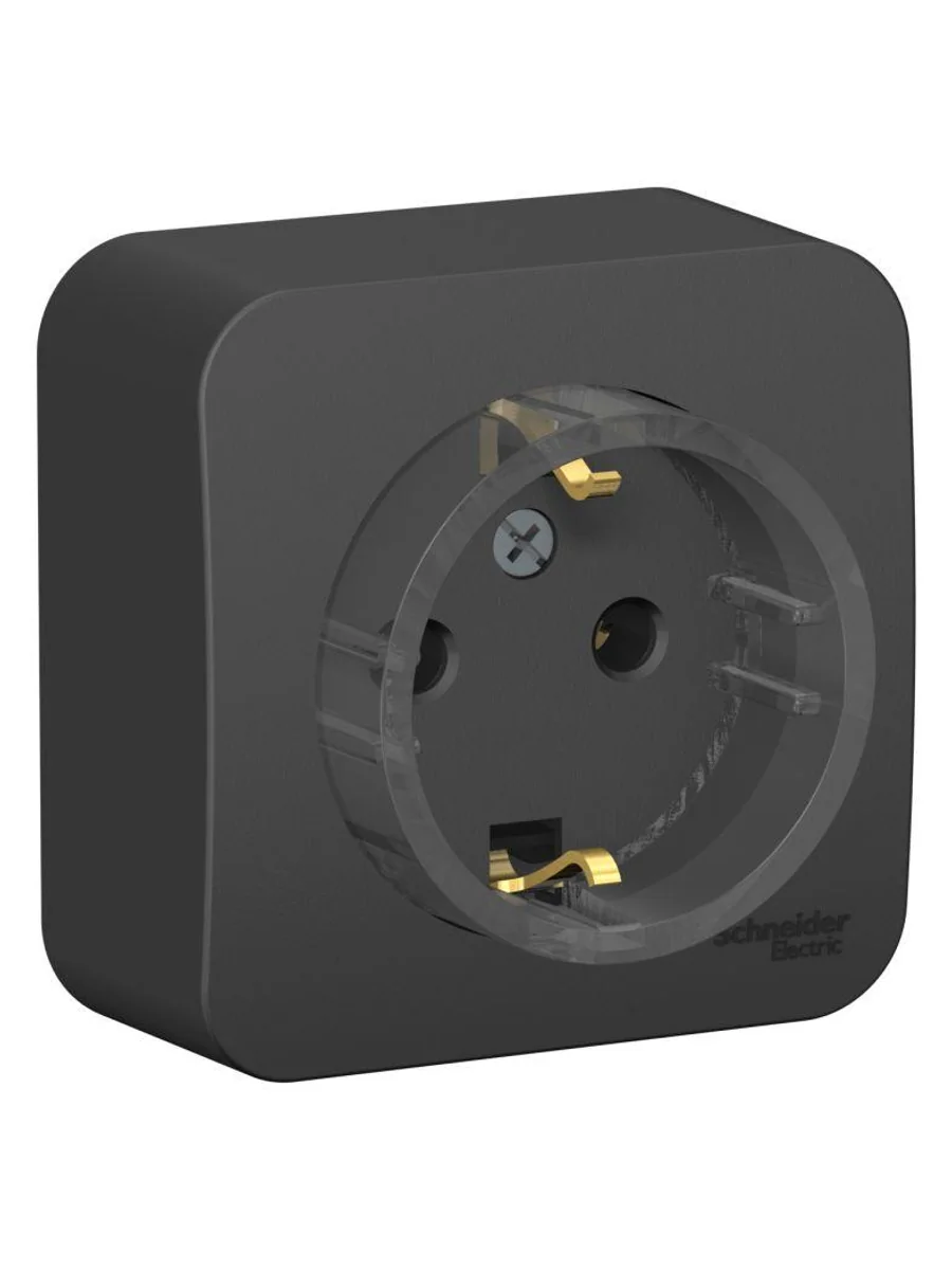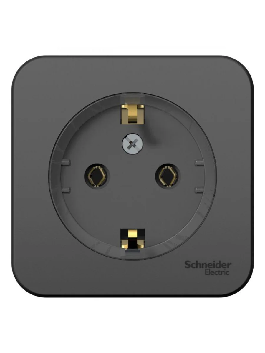 Розетка Systeme Electric (ранее Schneider Electric) BLANCA (антрацит, открытой установки) одноместная, с заземлением, без шторок предназначена для сетей до 250В, на ток до 16А. Заземление обеспечивает безопасность при косвенном прикосновении. Она изготовлена из ABS-пластика, проста в установке и удобна в применении.