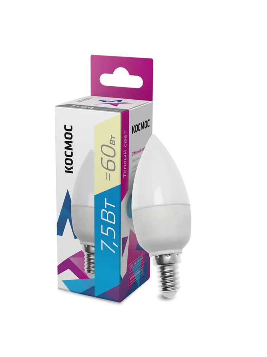 Светодиодная лампочка 7,5 Вт является аналогом лампы накаливания «свеча» 60 Вт – для средней комнаты понадобится 4 таких лампочки. Стабильный свет без падения яркости в течение всего срока службы (30 000 часов) – за счет использования светодиодов известных производителей. Лампа работает в диапазоне от 174В до 265В - не перегорит и не потеряет яркость при скачках напряжения в сети. Цвет свечения лампы - 3000 К теплый белый, идеально подойдет для спальни, и других зон, где требуется мягкий, расслабляющий свет. «Здоровый» свет без мерцания не утомляет глаза, а высокий индекс цветопередачи передает естественные цвета и оттенки. По размеру сопоставима с обычной лампочкой накаливания, но экономит до 90% энергии по сравнению с ней. Экологически безопасна и не требует утилизации.