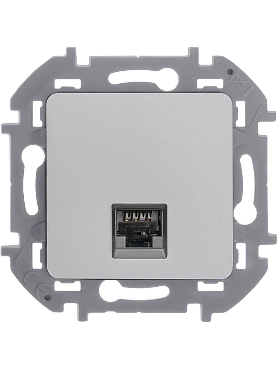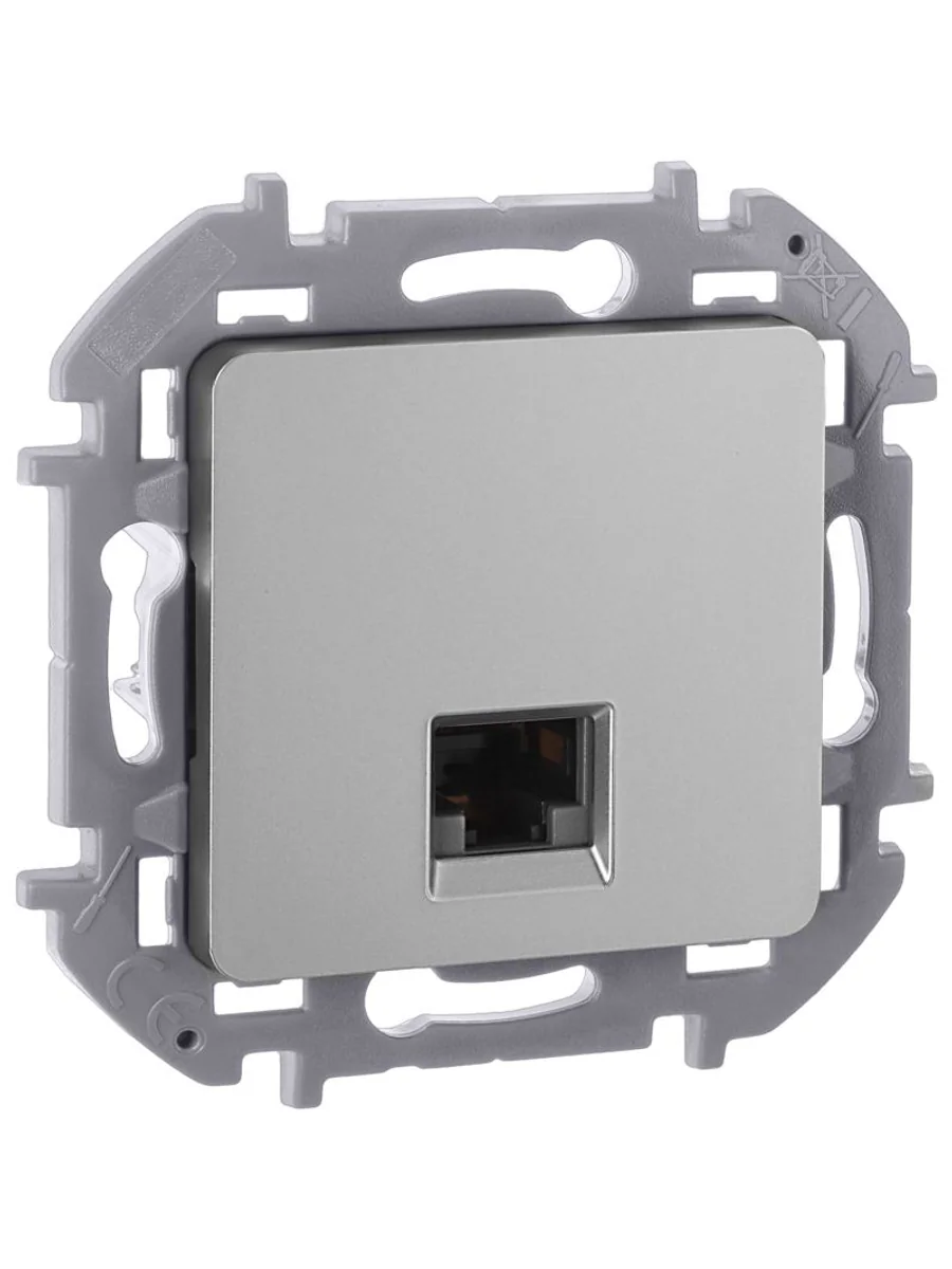 Розетка компьютерная для скрытого монтажа Inspiria, 1 разъем RJ45 категория 5е UTP, цвет "Алюминий". Предназначена для быстрого подключения персональных компьютеров, принтеров, роутеров и другого оборудования к информационным сетям категории 5е со скоростью передачи данных до 1000 Мбит/с. Возможно прямое подключение 1 устройства.