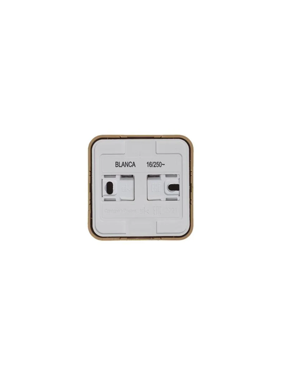 Розетка Systeme Electric (ранее Schneider Electric) BLANCA (ясень, открытой установки) одноместная с заземлением, шторками и изолирующей пластиной предназначена для сетей до 250В, на ток до 16А. Шторки открываются только при одновременном равномерном давлении в оба отверстия и препятствуют проникновению посторонних предметов. Они обеспечат дополнительную безопасность в доме, где есть дети. Изделия цвета Ясень обладают уникальным рисунком, напоминающим древесный сруб.