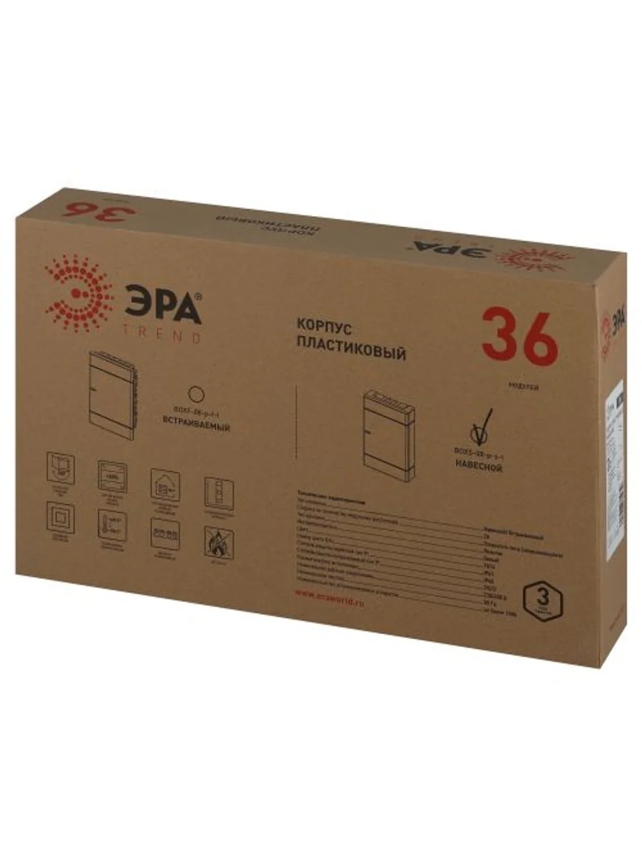 Щит распределительный навесной ЩРН-П-36 ЭРА Trend BOXS-36-p-s-t IP41 ТМ ЭРА, используется для установки модульных устройств, а также защиты сетей напряжением до 400 В от токов перегрузки и короткого замыкания. Обеспечивает защиту потребителей от поражения электрическим током. Применяется в гражданском строительстве, частном секторе на промышленных ,инфраструктурных, спортивных объектах. Изготовлен из пластика, не поддерживающего горение. Высокая технологичность, простой и быстрый монтаж. Регулируемая глубина DIN для боксов встраиваемого типа. Съемная DIN рейка с винтовым соединением. Простое введение кабелей через отверстия.