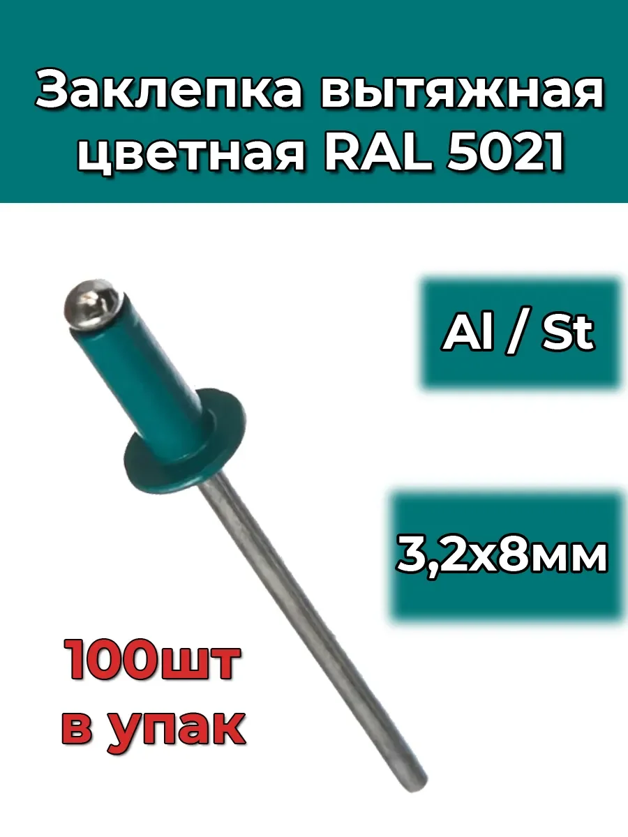 Заклепка вытяжная цветная RAL 5021 - купить в KeepBuilding | KeepBuilding